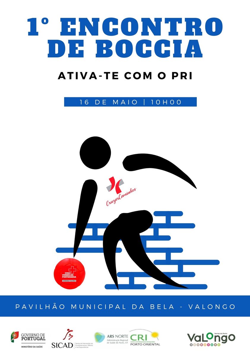 A Cruz Vermelha Portuguesa Gondomar/Valongo, com o apoio do Município de Valongo, vai realizar o "1.º Encontro de Boccia - Ativa-te com o PRI". O evento irá decorrer no dia 16 de Maio, no Pavilhão Municipal da Bela, em Ermesinde, entre as 9h00 e as 17h30.