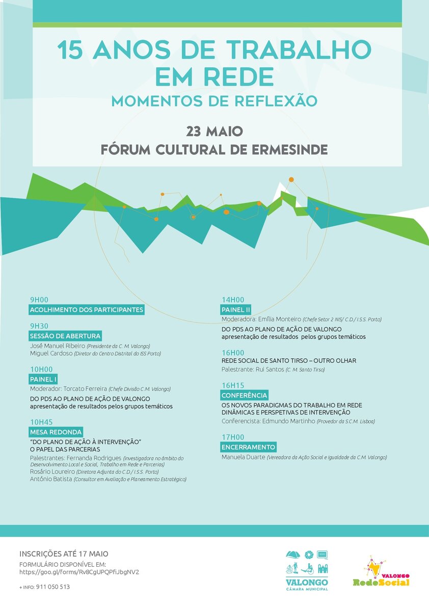 Este evento tem como objetivo principal criar um espaço e um momento de reflexão, partilha de conhecimento e validação de resultados das ações do PDS/Plano de desenvolvimento social, entre todos os intervenientes no processo, dirigentes e técnicos que intervêm no concelho de Valongo, primordialmente na área social.