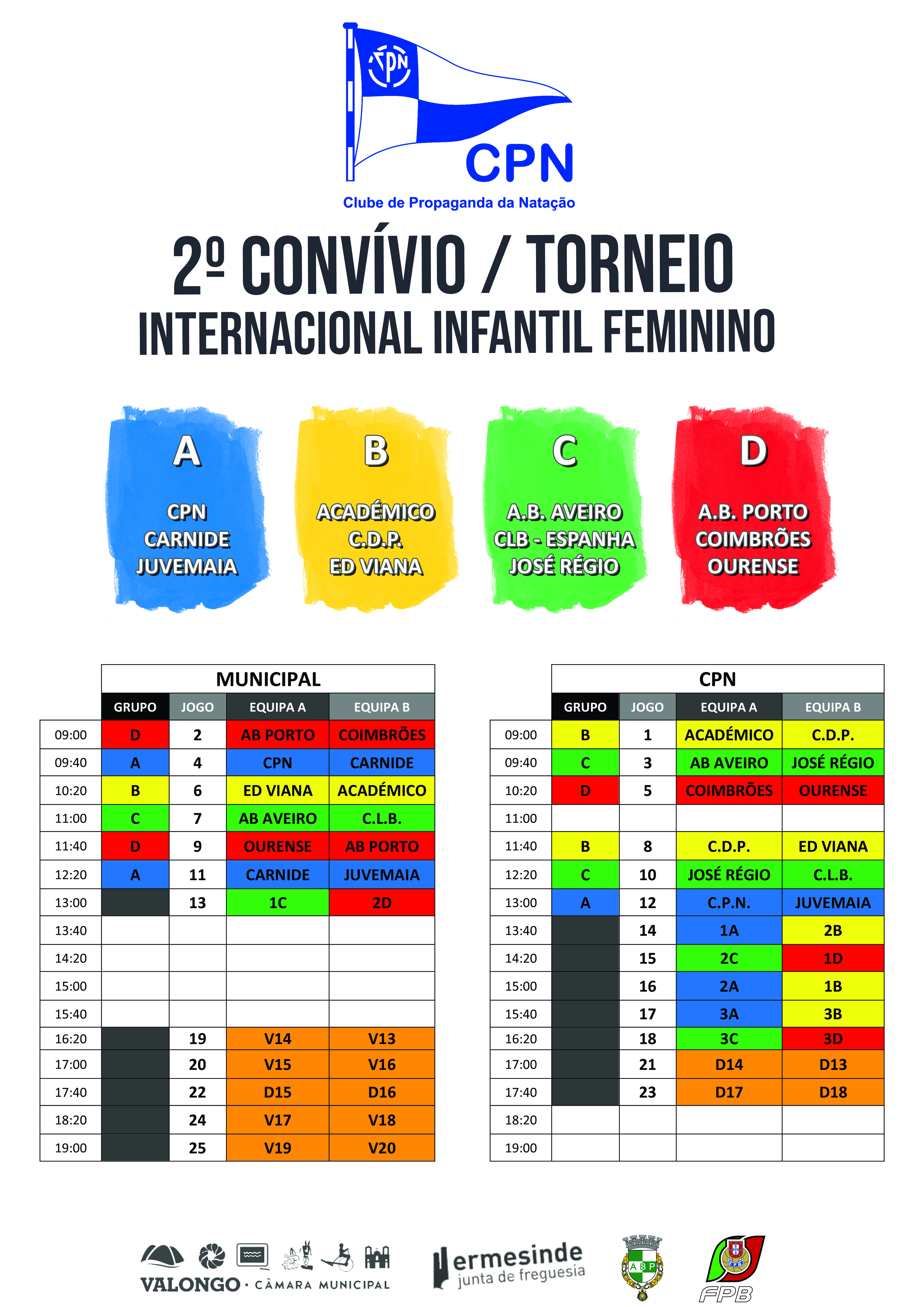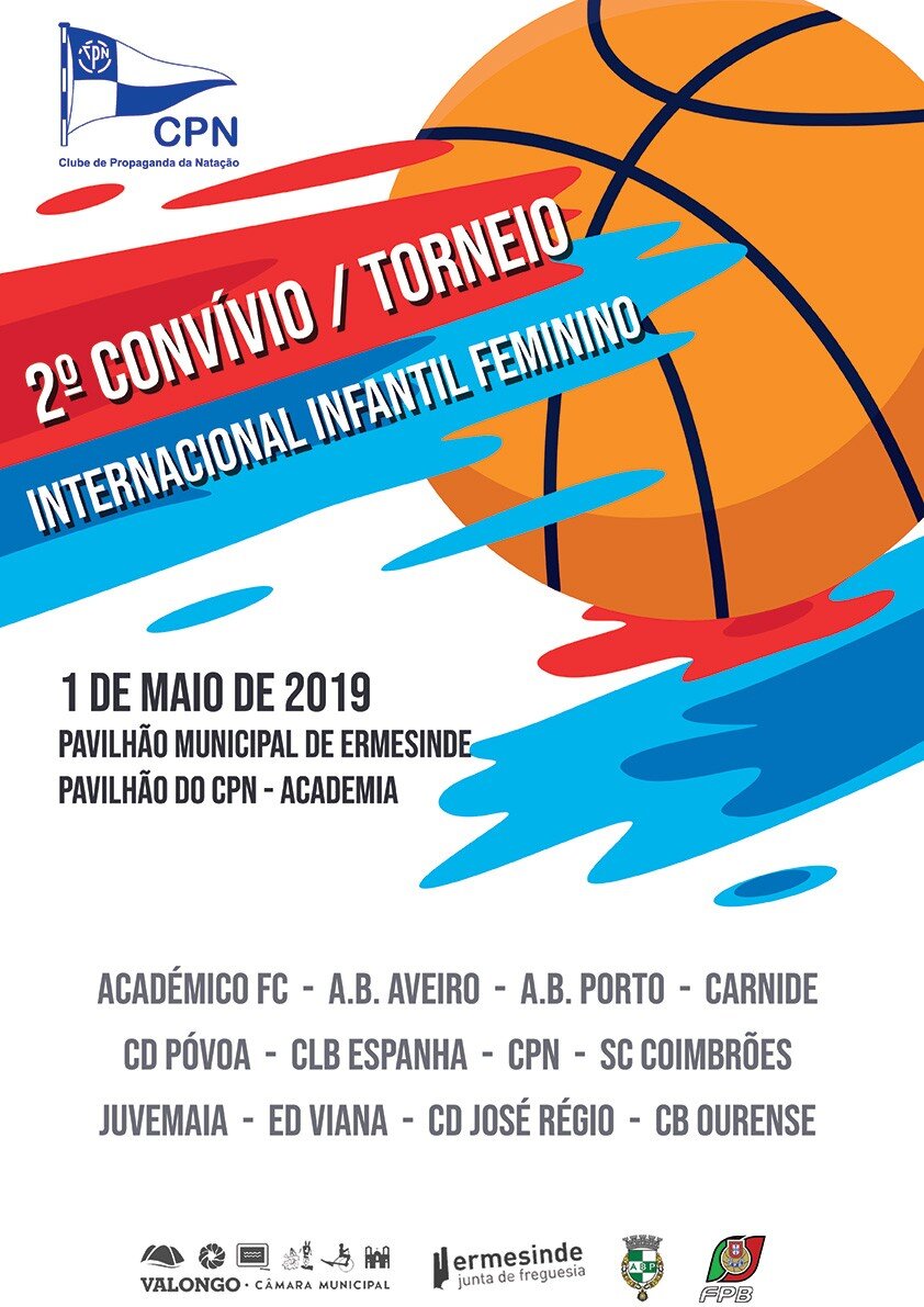O Clube de Propaganda de Natação realiza o 2.º Convívio/Torneio Internacional de Basquetebol Infantil Feminino, no dia 1 de maio, dirigido a atletas dos 12 aos 13 anos.