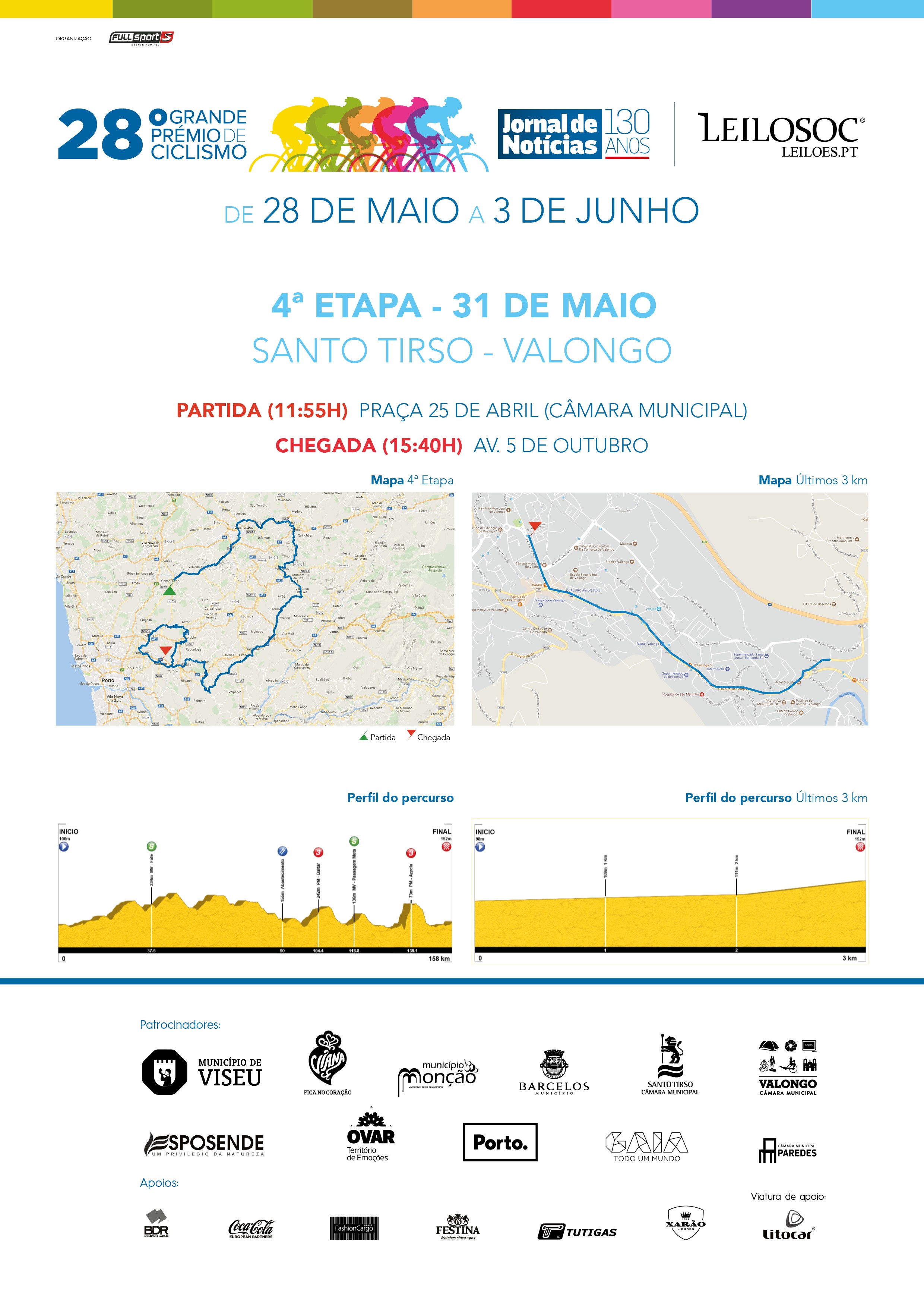 A 4.ª etapa da 28.ª edição do Grande Prémio de Ciclismo Jornal de Notícias termina em Valongo, na quinta-feira, no dia 31 de maio.