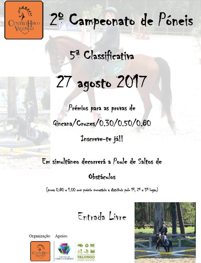 Dia 27 de agosto, pelas 10h00, decorrerá a 5ª Classificativa do 2º Campeonato de Póneis.