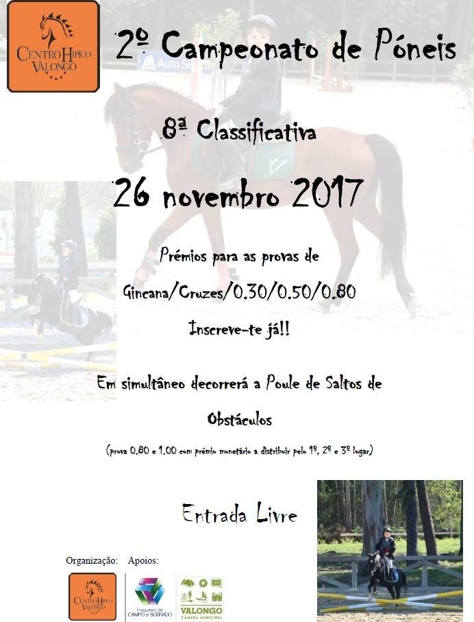 8ª Classificativa do 2º Campeonato de Póneis - 26 de novembro de 2017 | 09.30h / Poule de Saltos de Obstáculos