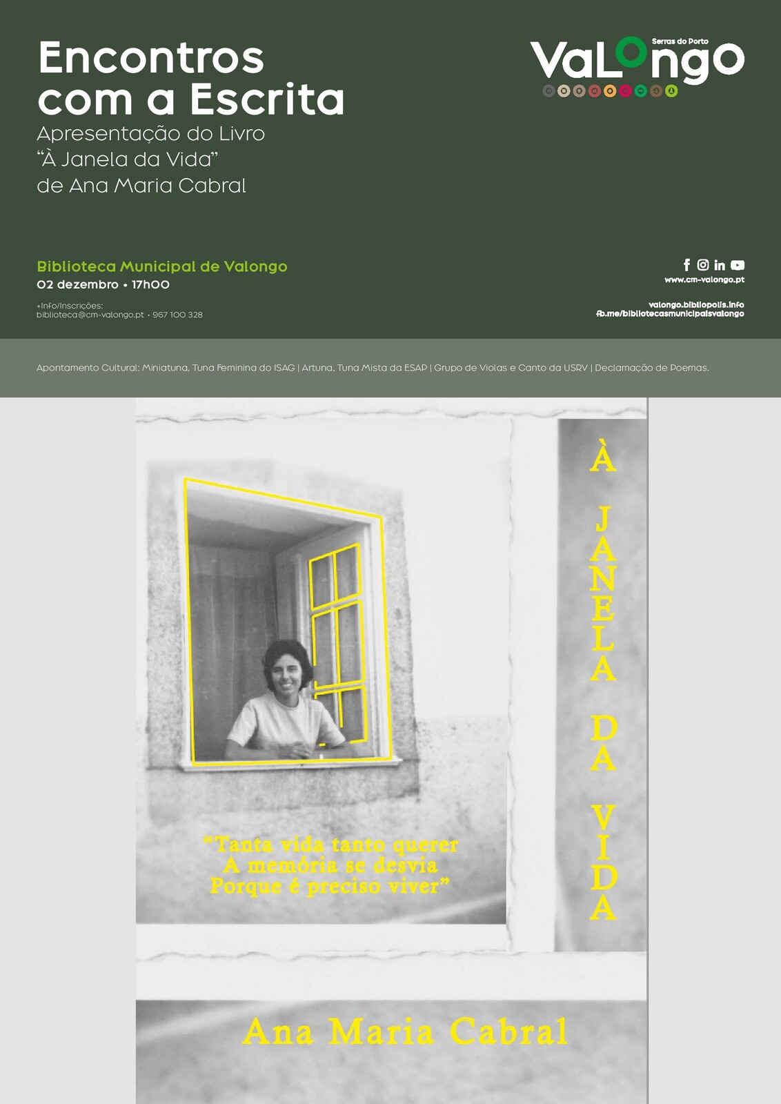 Mais informações e inscrições: biblioteca@cm-valongo.pt // 967 100 328