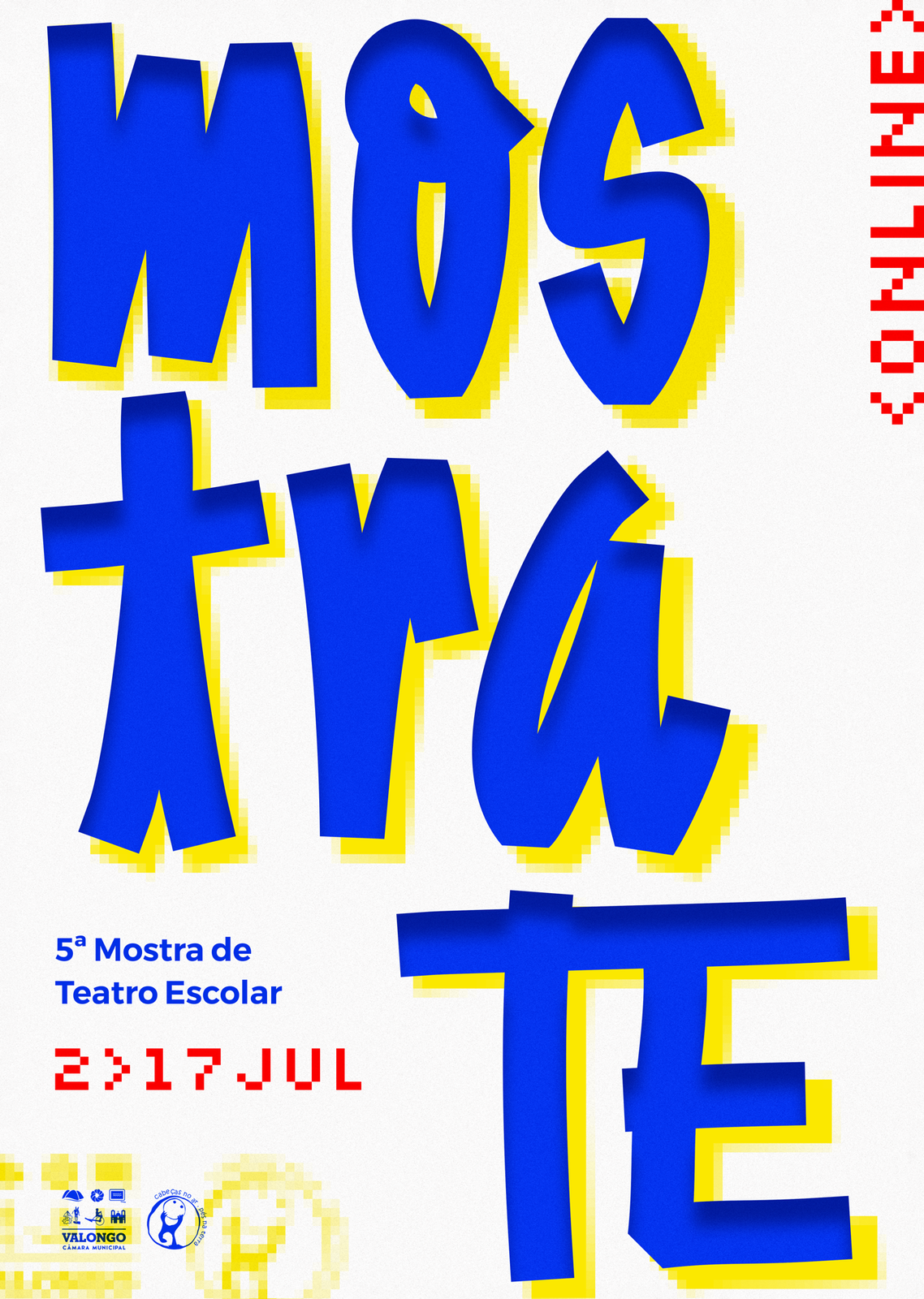 A MOSTRA TE – Mostra de Teatro Escolar é a parte mais visível e pública do trabalho que é feito ao longo do ano escolar junto dos alunos e alunas dos clubes de teatro, no âmbito do projeto do Município de Valongo Palco Letivo. Dinamizada pela companhia profissional de Teatro Cabeças no Ar e Pés na Terra, esta iniciativa envolve não só os estudantes, mas também encarregados de educação e professores dos Agrupamentos de Escolas de Alfena, de Campo, de Ermesinde, de S. Lourenço, de Vallis Longus e de Valongo, num total de 8 Clubes de Teatro.
