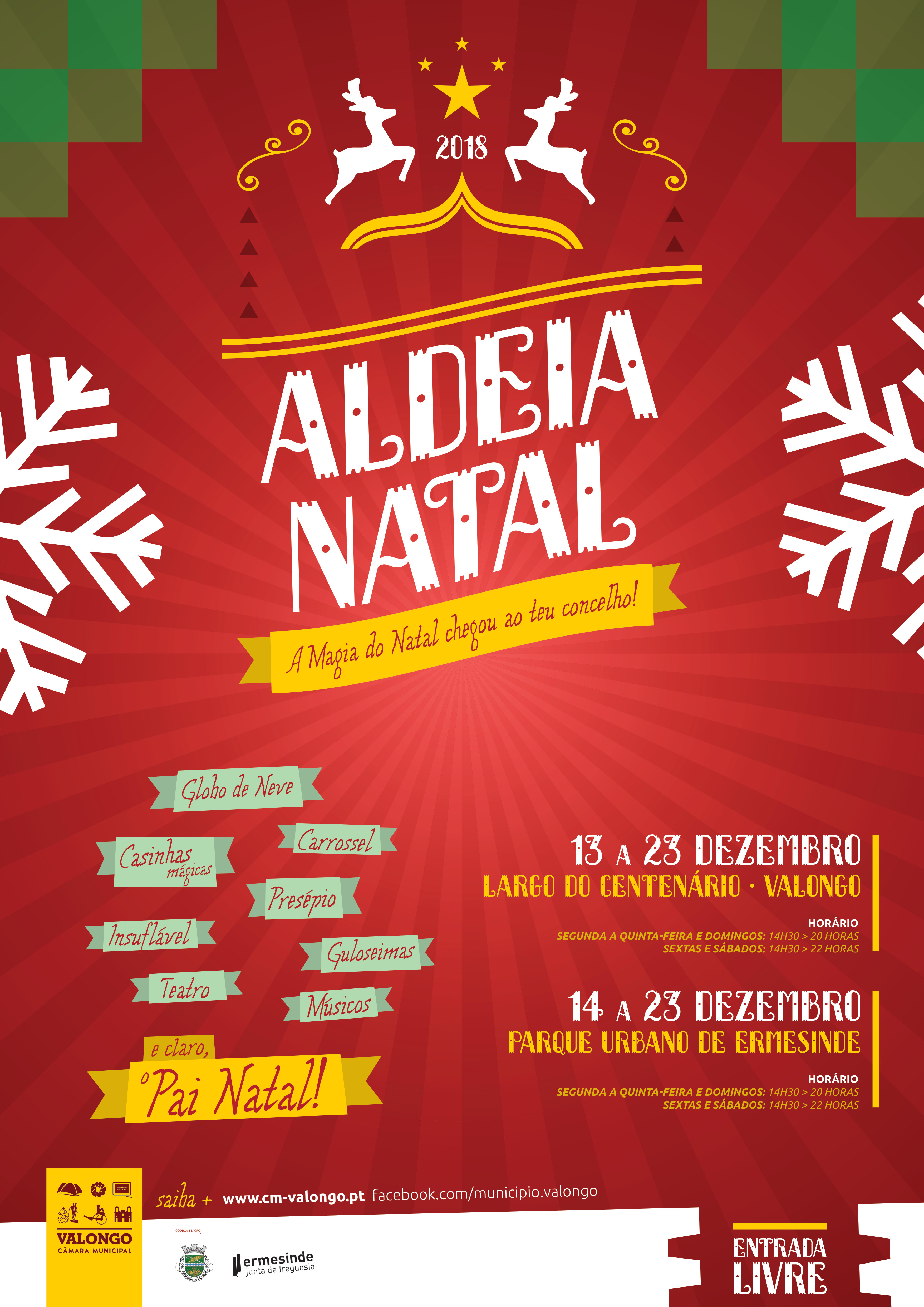 O Largo do Centenário, em Valongo, e o Parque Urbano, em Ermesinde, vão ser palco de mais uma edição da "Aldeia Natal", promovida pela Câmara Municipal de Valongo. De 13 a 23 de dezembro em Valongo, e de 14 a 23 de dezembro em Ermesinde, o espírito natalício vai animar a população do concelho de Valongo, sobretudo os mais jovens.