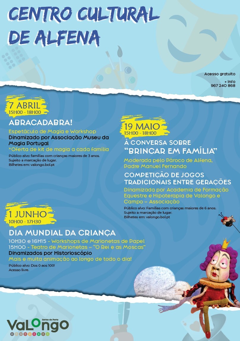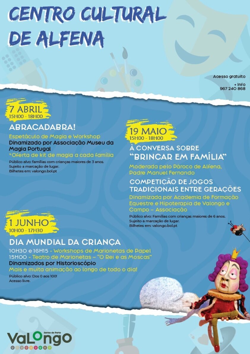No contexto do Dia Internacional da Família, o Município promove uma conversa intergeracional sobre o tema "Brincar em Família". Numa sociedade cada vez mais digital e ocupada, a importância de brincar em família é muitas vezes subestimada. Nesta conversa interativa exploraremos como as brincadeiras entre pais e filhos não só fortalecem os laços familiares, como promovem o desenvolvimento emocional, social e cognitivo das crianças. A sessão será moderada pelo Sr. Padre Manuel Fernando, Pároco de Alfena, e terá como oradores o historiador Germano Silva, a psicóloga Catarina Lobo e a educadora Conceição Marques.