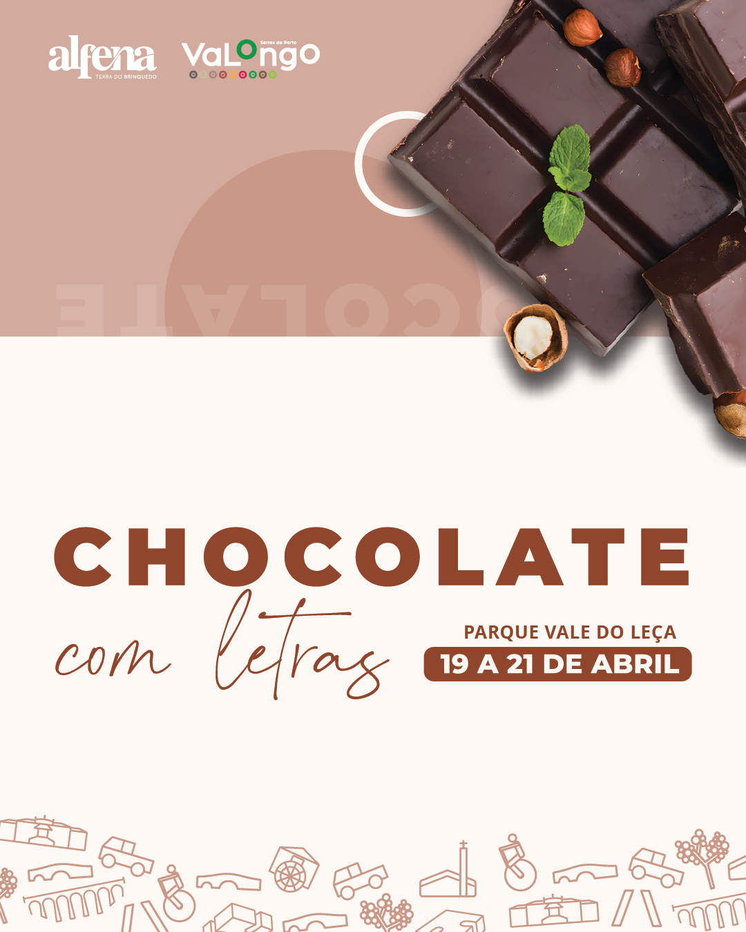 O Parque Vale do Leça, em Alfena, vai receber mais uma edição do festival "Chocolate com Letras", uma iniciativa do Município de Valongo e da Freguesia de Alfena. Entre 19 e 21 de abril, não vão faltar motivos para visitar Alfena e deliciar-se com as iguarias doces e, ao mesmo tempo, com um vasto conjunto de eventos relacionados com o livro e a leitura. Também não faltarão momentos culturais variados e de grande qualidade.
