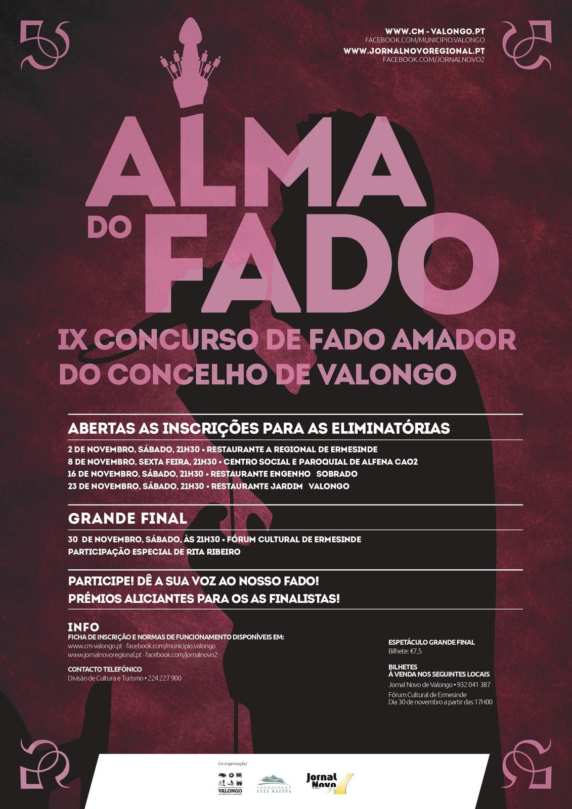 A edição ALMA DO FADO 2019, com organização da Câmara de Valongo, Cuca Macuca e Jornal Novo Regional, vai decorrer em novembro, sendo a final a 30, pelas 21h45, contando como convidada especial com Rita Ribeiro.