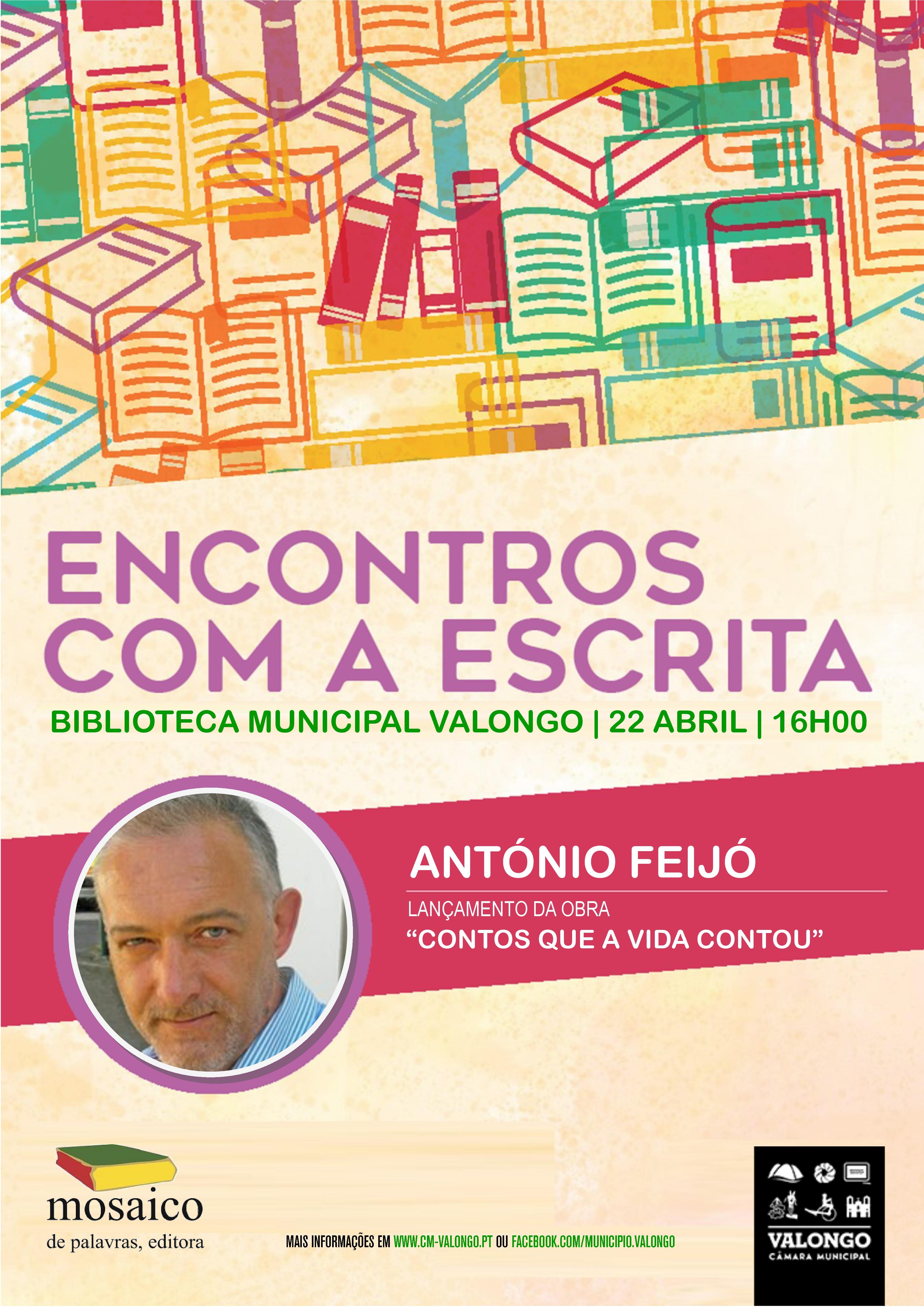Para assinalar a efeméride, no âmbito das suas atividades de extensão cultural, a Biblioteca Municipal de Valongo recebe no dia 22 de abril, pelas 16h00, o autor António Feijó, com apresentação da sua última obra “Contos que a vida contou", da Mosaico de Palavras Editora.