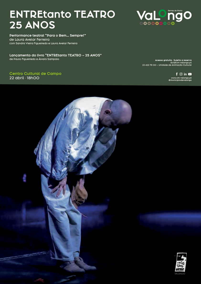 No próximo dia 22 de abril, pelas 18h00, o Centro Cultural de Campo recebe a sessão de apresentação do livro "ENTREtanto TEATRO - 25 anos". A apresentação do livro será precedida por um apontamento de teatro, a cargo de Laura Ferreira e Sandra Vieira.