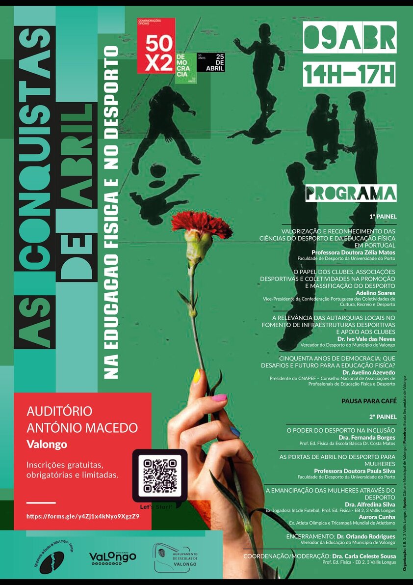 O Município de Valongo e o Agrupamento de Escolas Vallis Longus realizam a palestra “As Conquistas na Educação Física e no Desporto com a Revolução de abril”, no próximo dia 9 de abril.