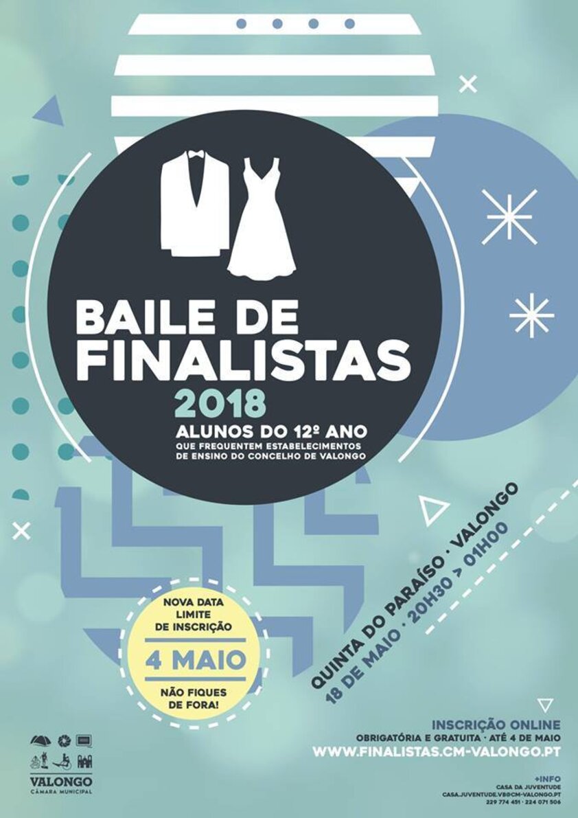 Inscrições para o Baile de Finalistas promovido pela Câmara Municipal de Valongo disponíveis até dia 04 de maio em www.finalistas.cm-valongo.pt.