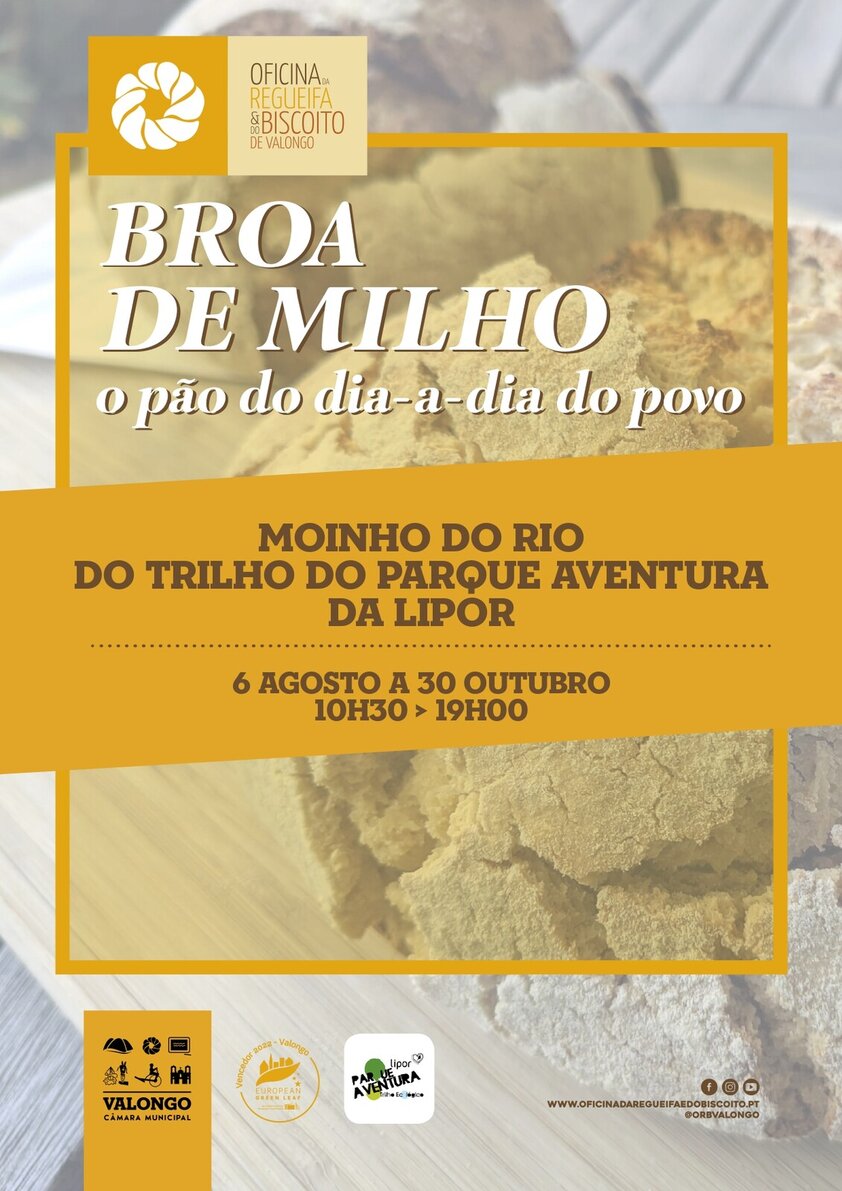 A broa de milho foi, durante muito tempo, o pão do dia-a-dia do povo. Enquadrado numa paisagem repleta de plantações de milho, o Moinho do Rio, no meio do Trilho do Parque Aventura da Lipor, recebe agora esta exposição dedicada à broa e ao milho. A desfolhada, a vida dos moleiros, o misticismo associado aos moinhos e a evolução da moagem tradicional para as fábricas moageiras são alguns dos tópicos desta exposição.