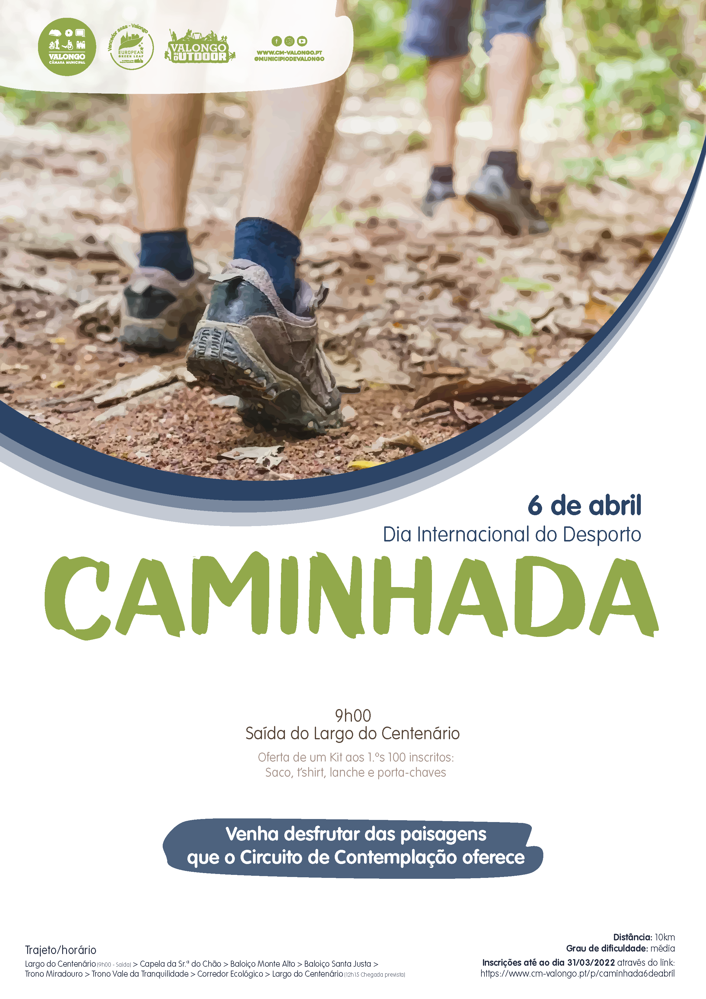 No Dia Internacional do Desporto, 6 de abril, a Câmara Municipal de Valongo organiza uma caminhada, com partida e chegada no Largo de Centenário.