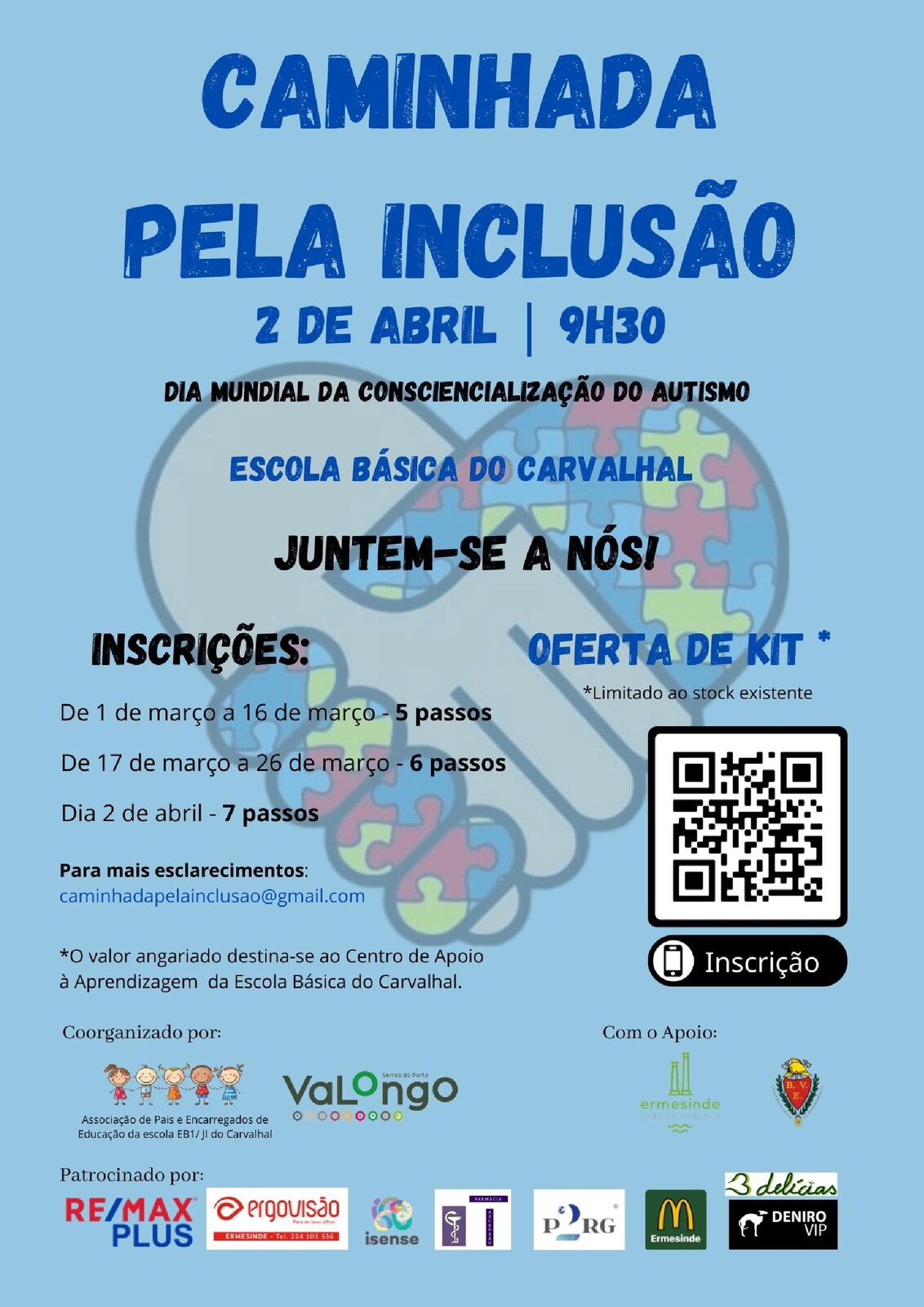 A Associação de Pais da Escola do Carvalhal - Ermesinde, em coorganização com o Município de Valongo e apoio da Junta de Freguesia de Ermesinde, vai realizar no dia 2 de abril, uma caminhada solidária com cerca de 5 km, que percorrerá várias artérias da Cidade de Ermesinde. A partida será na Escola do Carvalhal, pelas 09h30.