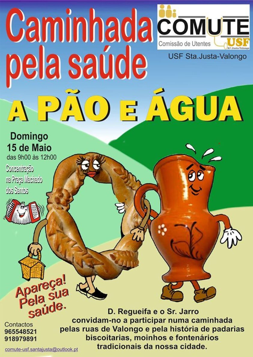 A COMUTE USF Santa Justa - Comissão de Utentes da Unidade de Saúde Familiar Santa Justa promove no próximo dia 15 de maio (domingo), entre as 9h00 e as 12h00, a sua primeira atividade pública. Trata-se de uma caminhada pela zona antiga de Valongo e pela história de padarias, biscoitarias, moinhos e fontenários tradicionais da nossa cidade. O local de encontro é na Praça Machado dos Santos. O circuito a percorrer tem pouco mais de 5 quilómetros.
