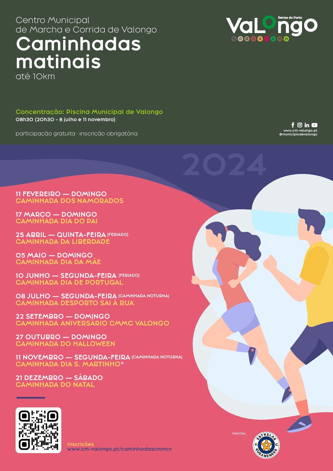 Têm início a 11 de fevereiro e prolongam-se até 21 de dezembro, as caminhadas matinais promovidas pelo Município de Valongo em parceria com o Futebol Clube Estrelas Susanenses. Exceptuando as edições de julho e novembro, que serão noturnas e com partida às 20h30, as restantes caminhadas têm início às 08h30. A concentração é sempre junto à Piscina Municipal de Valongo.