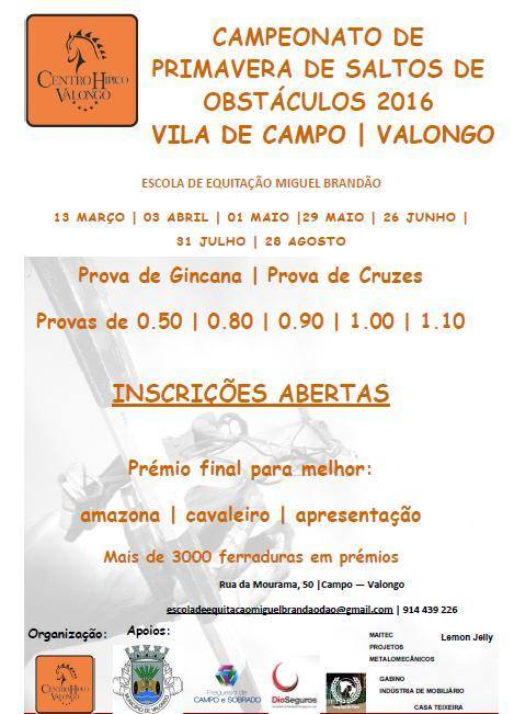 Para além da Poule de Saltos de Obstáculos a realizar no dia 13 de Março, pelas 09.00h, no Centro Hípico de Valongo, irá decorrer em simultâneo o 1º Troféu de Póneis – Salto de Obstáculos.