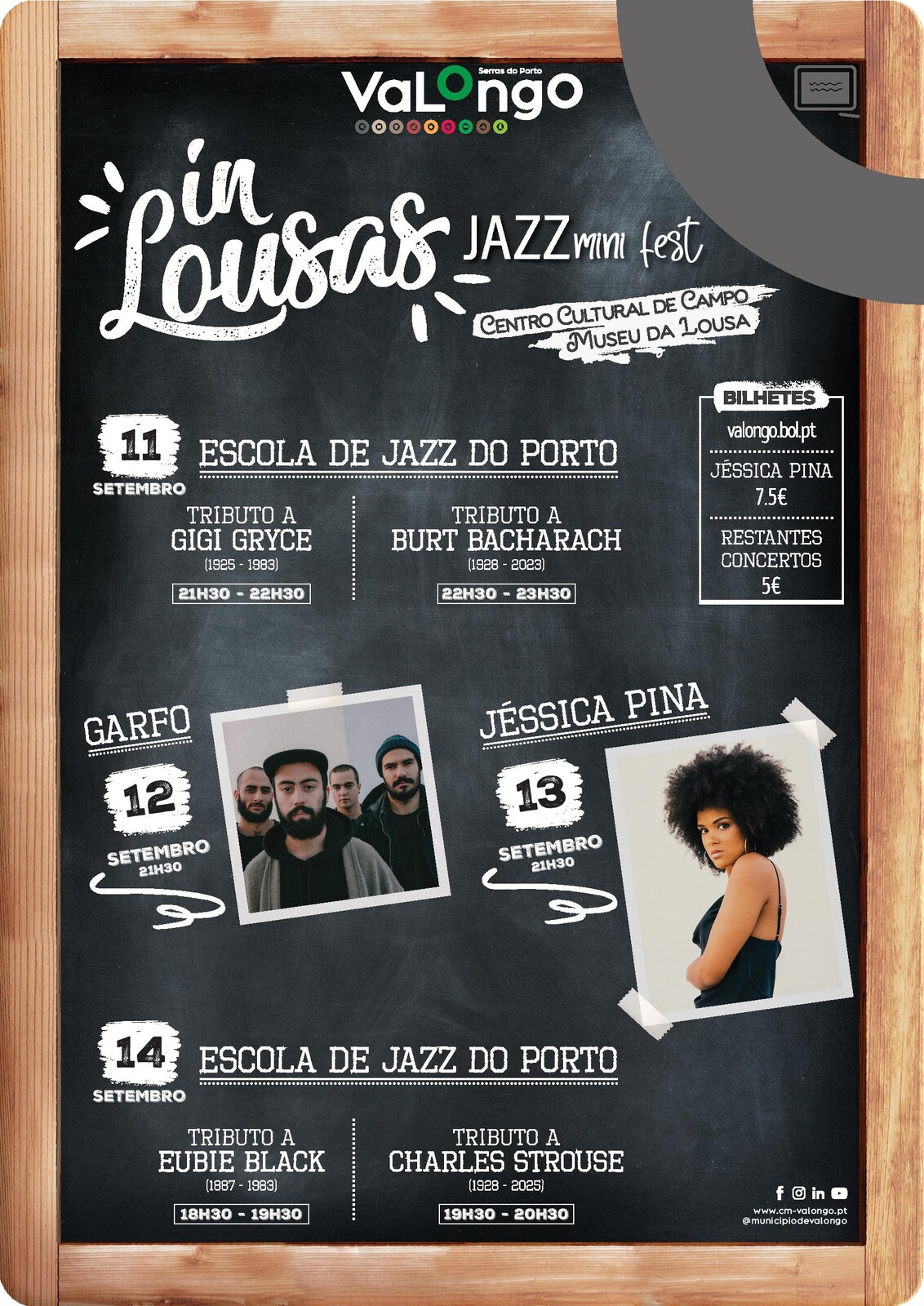 O Centro Cultural de Campo será palco do Inlousas | Jazzmini fest, uma iniciativa que decorre entre 11 a 14 de setembro e que junta importantes nomes do jazz. Os Tributos a Gigi Gryce, Burt Bacharach, Eubie Black e Charles Strouse pela Escola de Jazz do Porto, os Garfo e Jéssica Pina serão responsáveis pelos espetáculos que irão divulgar ainda mais este estilo de música cada vez mais presente na vida dos portugueses.