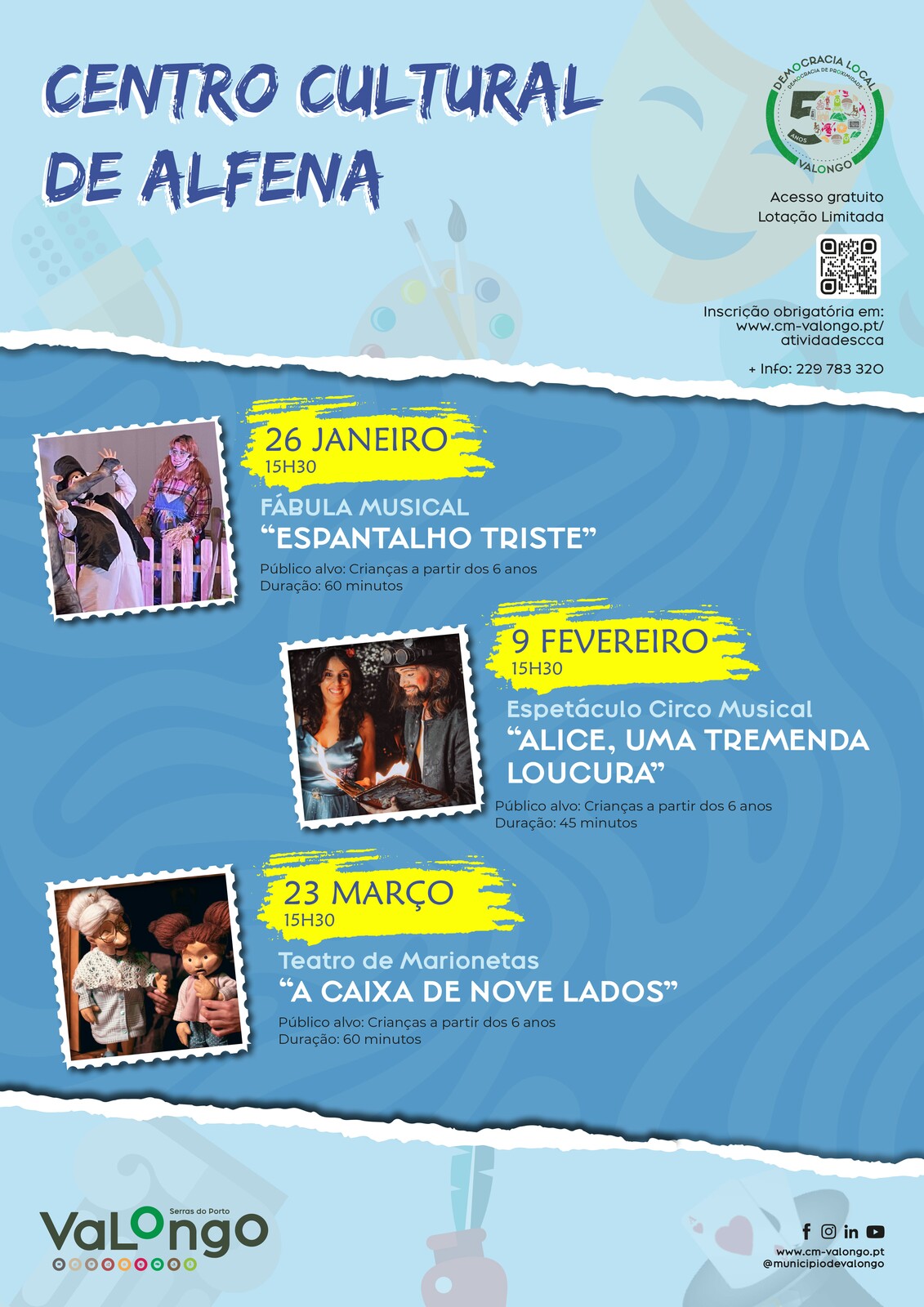 Todas as atividades são de participação gratuita sujeitas a inscrição prévia em: https://www.cm-valongo.pt/atividadescca