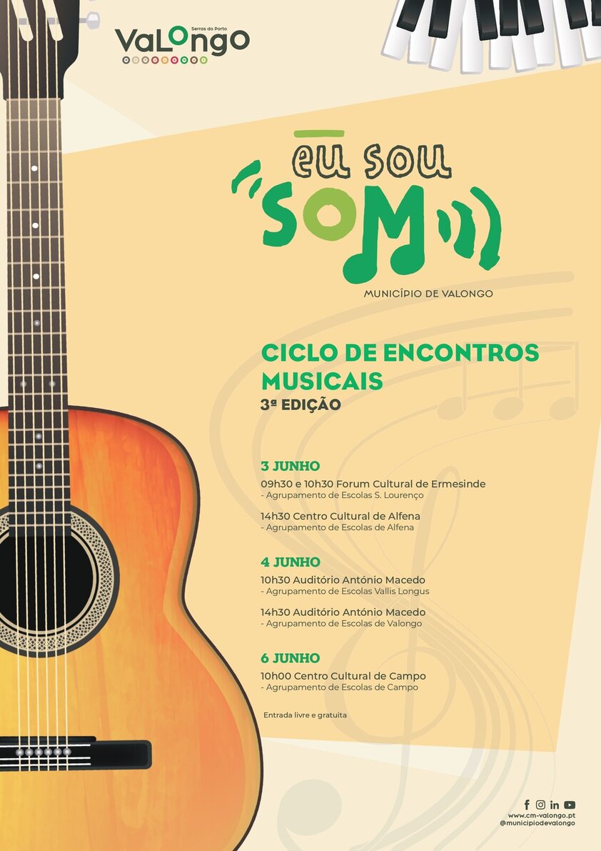 O ‘Ciclo de Encontro Musicais’ vai realizar-se em Valongo, nos dias 3, 4 e 6 de junho, num conjunto de seis apresentações, que decorrem do projeto “Eu Sou Som – um projeto de artes ao serviço da inclusão social”