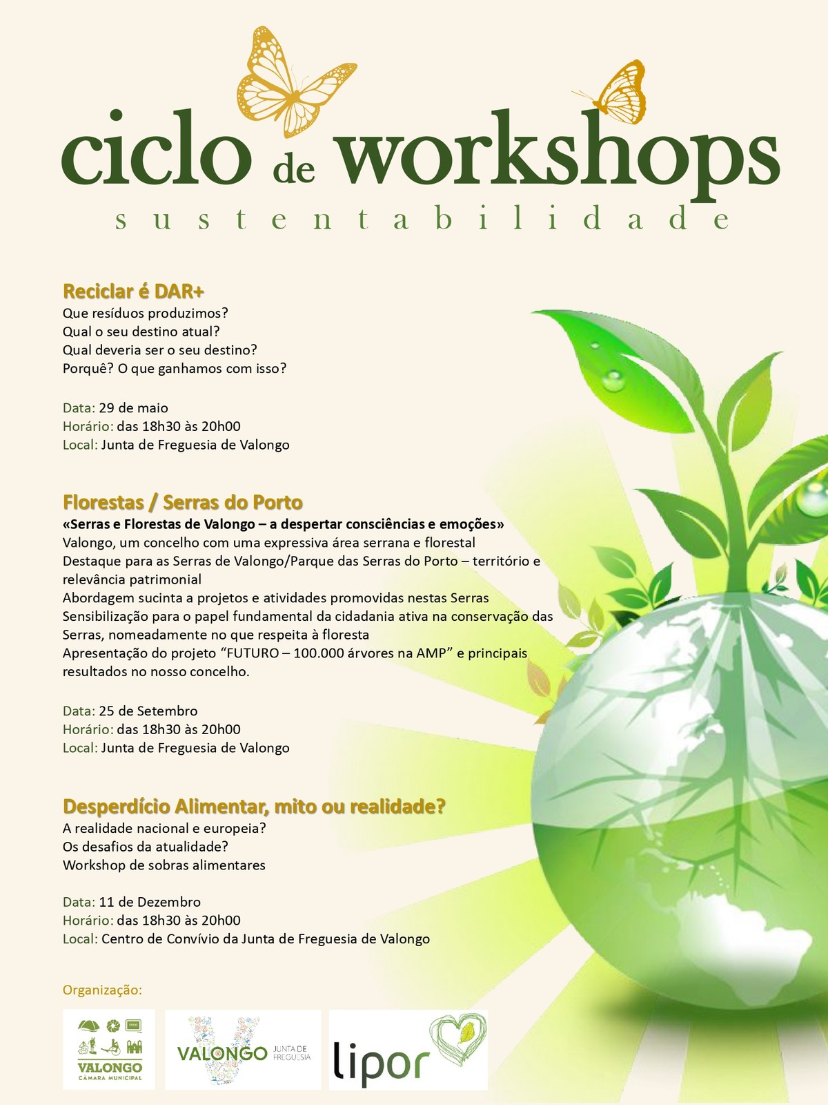A Câmara Municipal de Valongo, a Junta de Freguesia de Valongo e a Lipor vão organizar durante o ano de 2019 um ciclo de workshops relacionados com a sustentabilidade. O primeiro workshop decorrerá no dia 29 de maio, entre as 18h30 e as 20h00, na Junta de Freguesia de Valongo e terá como tema "Reciclar é dar+".