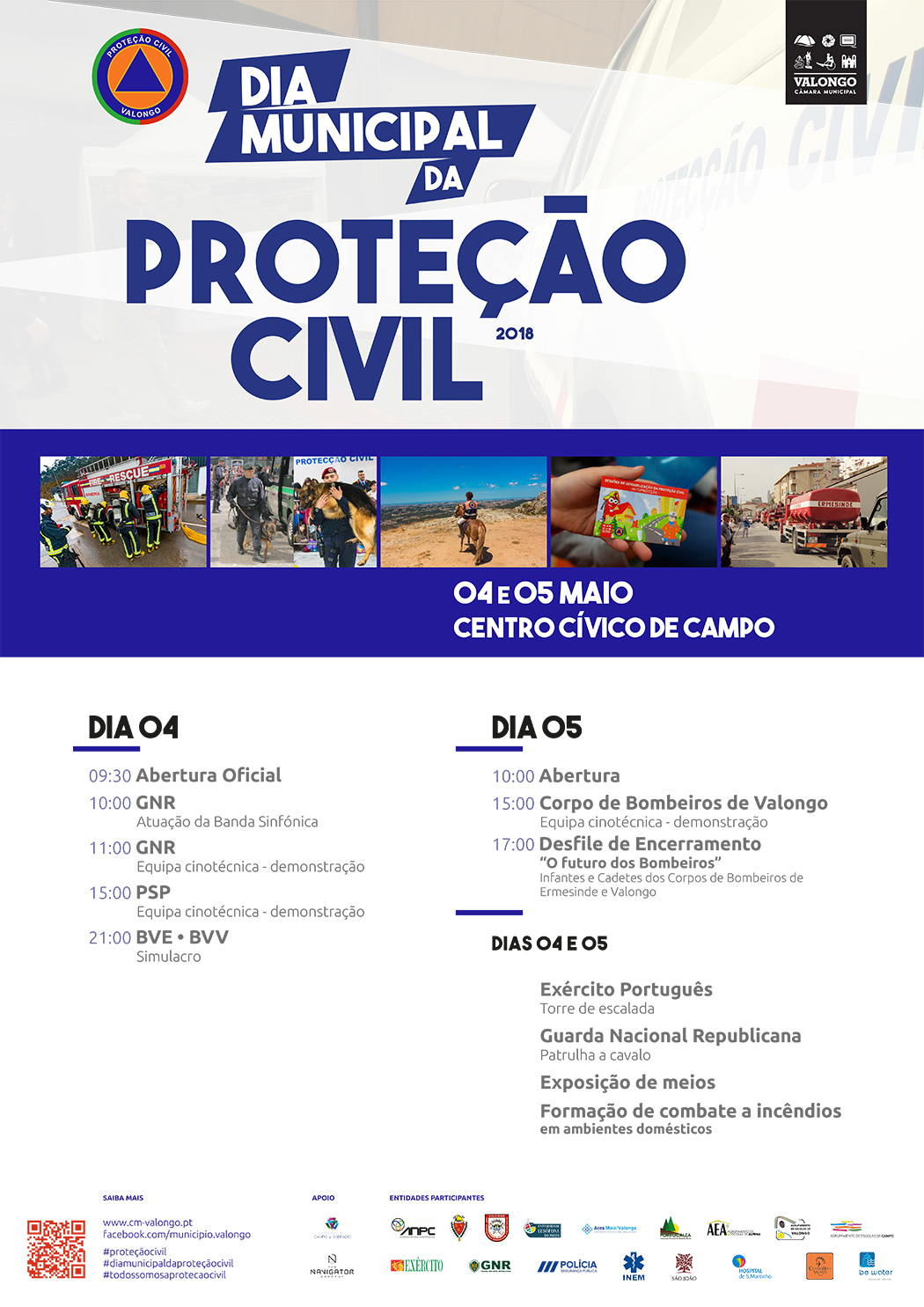 Em 2018, o Dia Municipal da Proteção Civil comemora-se nos dias 4 e 5 de maio, no Centro Cívico de Campo, em frente ao edifício da Junta de Freguesia. Esta iniciativa promovida anualmente pela Câmara Municipal de Valongo tem como objetivo dar a conhecer à população em geral os diversos agentes da Proteção Civil, que atuam no concelho em prol da segurança de todos os cidadãos.