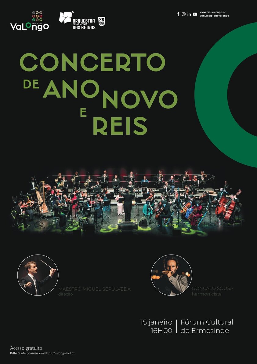Para a Orquestra Filarmonia das Beiras nada faz mais sentido do que começar o novo ano com música! No já tradicional Concerto de Ano Novo e Reis, que constitui um dos momentos marcantes da temporada musical da orquestra, voltaremos a fazer ouvir, tal como em Viena, uma seleção de Valsas, Polcas e Marchas da família Strauss, e ainda obras de outros compositores que nos farão entrar o Novo Ano em ambiente festivo.