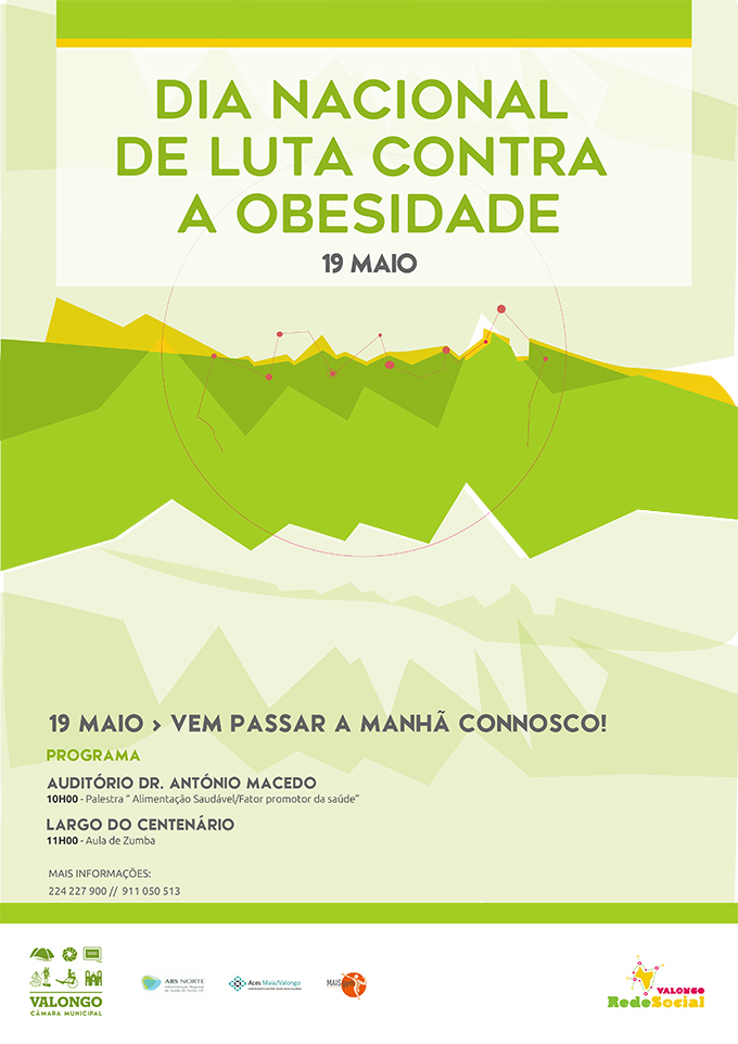 A Câmara Municipal de Valongo vai assinalar o Dia Nacional da Luta Contra a Obesidade, a 19 de maio, com a realização da palestra “Alimentação Saudável/Fator promotor da saúde” e com a dinamização de uma aula de zumba. Esta inciativa tem como objetivo alertar a população portuguesa para a problemática da obesidade e promover estilos de vida saudáveis junto das famílias através de atividades que fomentem escolhas alimentares mais saudáveis e a prática regular de exercício físico.