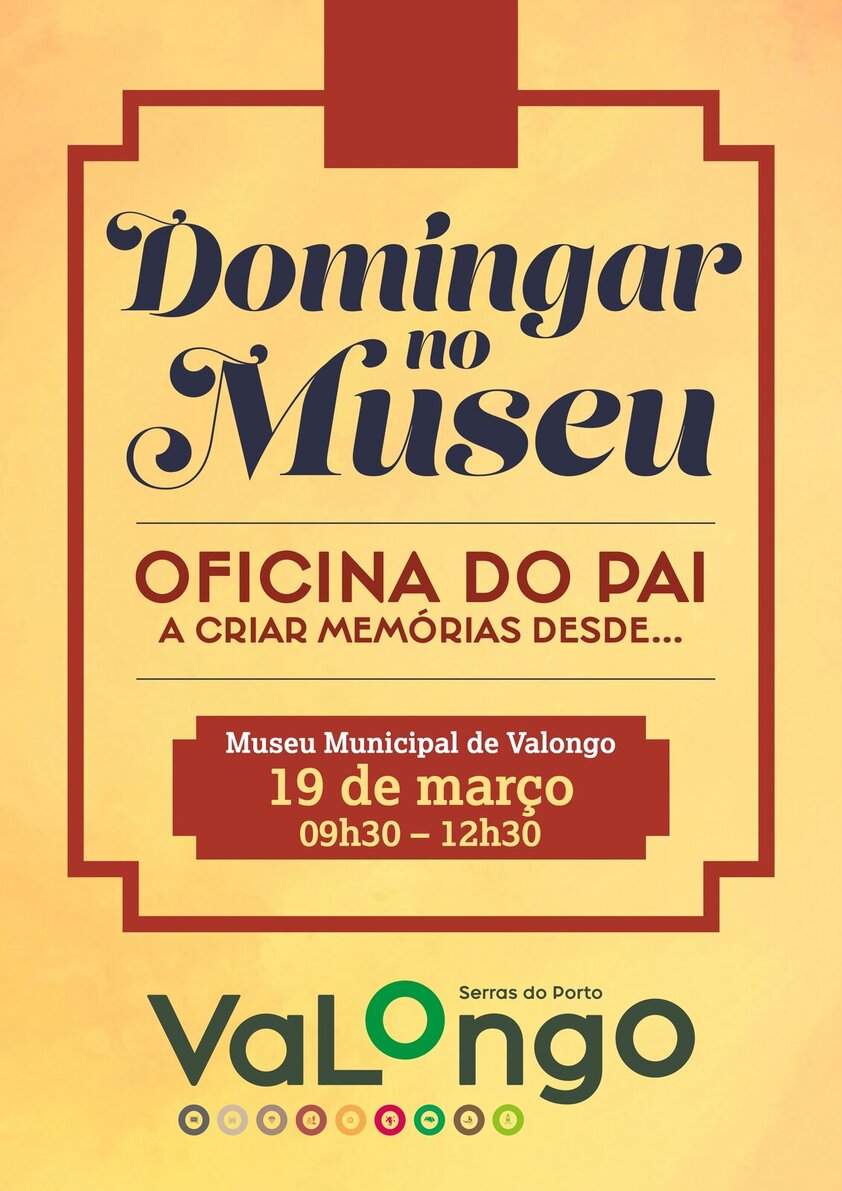 No dia 19 de março, das 9h30 às 12h30, traz o pai, a mãe, os teus irmãos ou irmãs ou outros familiares e amigos/as ao Museu Municipal de Valongo e participa na “Oficina do Pai – a criar memórias desde…”. Para assinalar o Dia do Pai, o "Domingar no Museu" vai ajudar-te a fazer um presente para ofereceres ao teu pai.