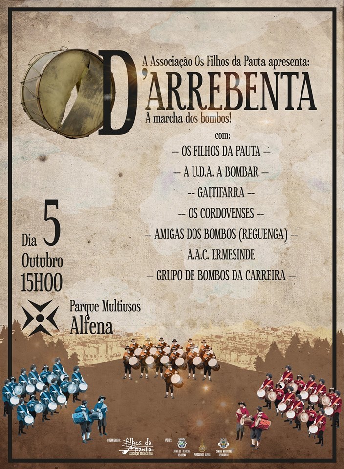 No feriado do dia 5 de outubro, pelas 15h00, a associação cultural Os Filhos da Pauta promove um encontro de tocadores de bombos com a presença de vários grupos. O evento intitulado «D'arrebenta - A Marcah dos Bombos!» vai realizar-se no Espaço Multiusos de Alfena.