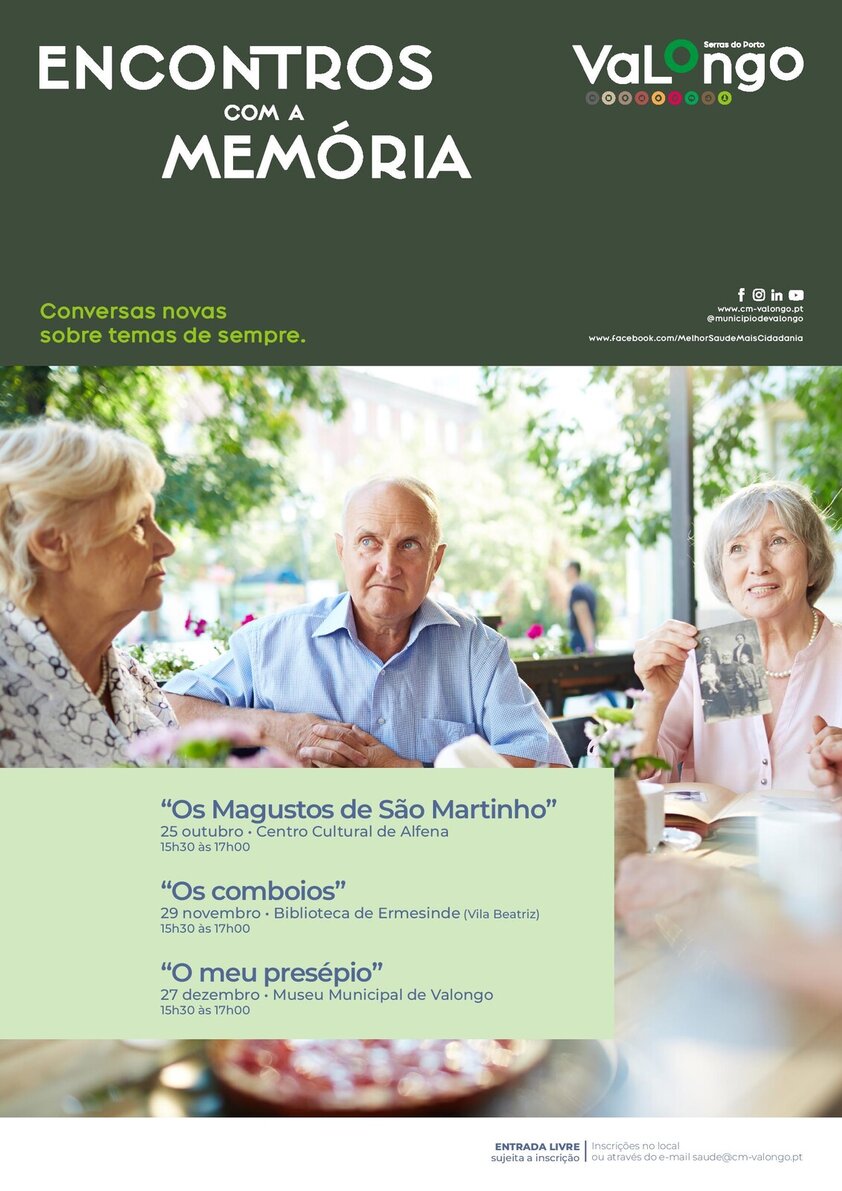 Com base no Plano de Ação da Saúde e no âmbito do projeto a Comunidade Cuidadora, a Câmara Municipal de Valongo vai promover um nova iniciativa denominada "Encontros com a Memória". Trata-se de um conjunto de inciativas que visam debater temas "antigos" com novas abordagens, promovendo o contacto entre diferentes gerações.