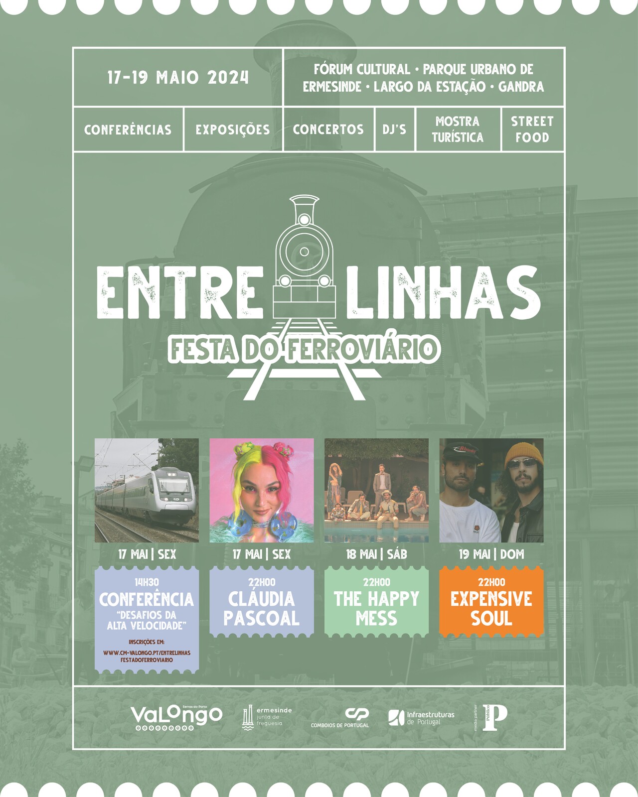 Entre 17 e 19 de maio, o ENTRELINHAS - Festa do Ferroviário volta a unir as duas "margens" da Estação de Ermesinde. Conferências, exposições, concertos, DJ'S, Street Food e Mostra Turística são algumas das valências que estarão presentes no recinto que engloba o Fórum Cultural de Ermesinde, o Parque Urbano, o Largo da Estação e a zona da Gandra.