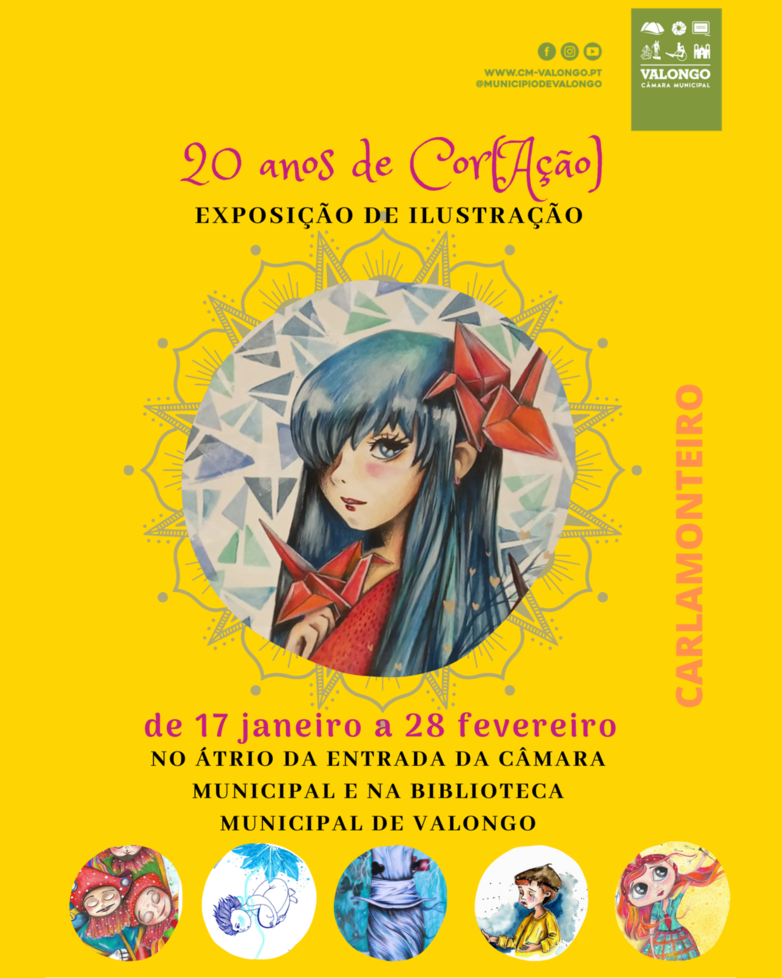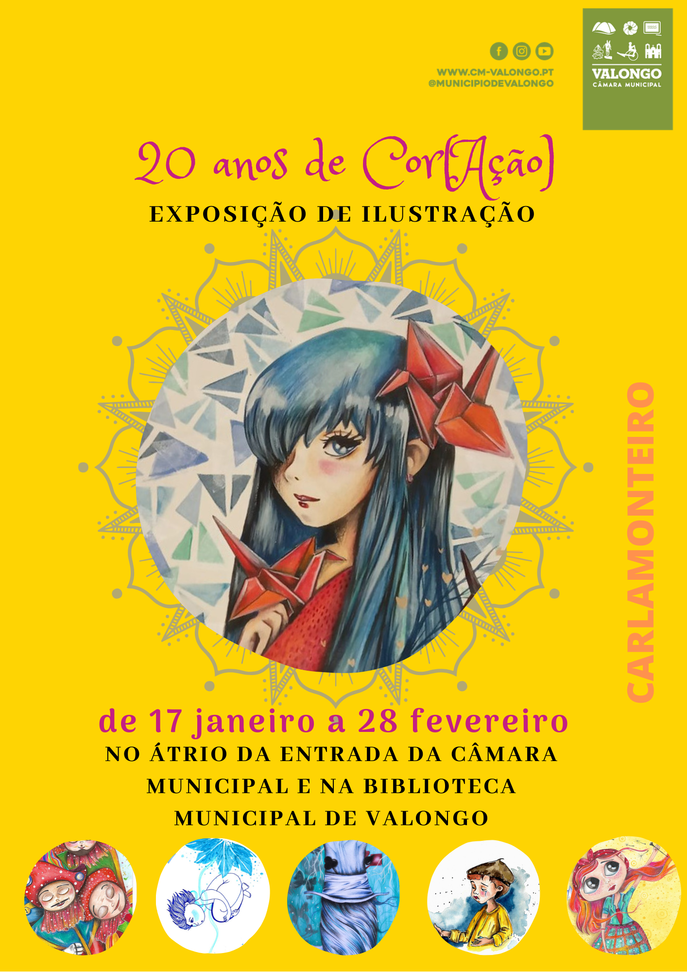 A Biblioteca Municipal de Valongo, no âmbito do seu plano anual de exposições, terá patente a Exposição de ilustração "20 anos de Cor(Ação)" de Carla Monteiro, de 17 de janeiro a 28 de fevereiro, no Átrio da entrada da Câmara Municipal e na Biblioteca Municipal de Valongo.