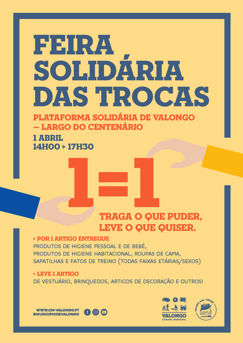 A Feira Solidária das Trocas está de regresso para a sua 3ª edição, no dia 1 de abril, das 14h00 às 17h30.