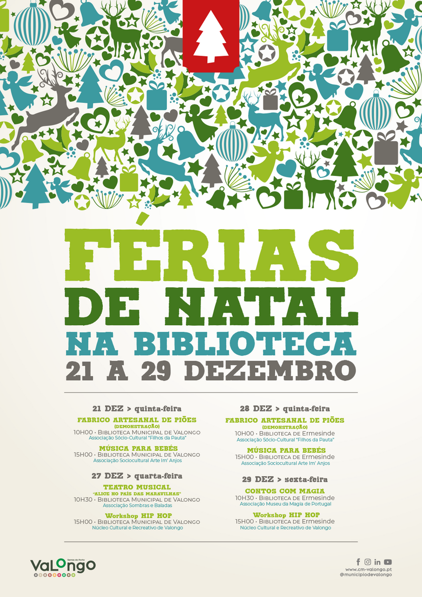 As Férias de Natal na Biblioteca estão de regresso e prometem muita animação e partilha. Nos dias 21 e 27, as atividades decorrem na Biblioteca de Valongo, enquanto nos dias 28 e 29 acontecem em Ermesinde, na Biblioteca da Vila Beatriz.