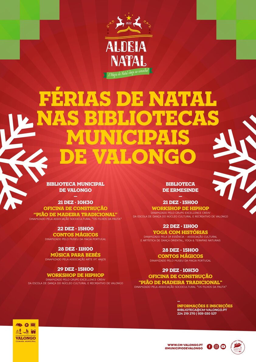 As bibliotecas municipais de Valongo e de Ermesinde vão promover uma edição das "Férias de Natal nas Bibliotecas". Entre 21 e 29 de dezembro, os dois equipamentos vão acolher diversas atividades relacionadas com a época natalícia, nomeadamente workshops, música para bebés, contos mágicos e oficinas de construção.