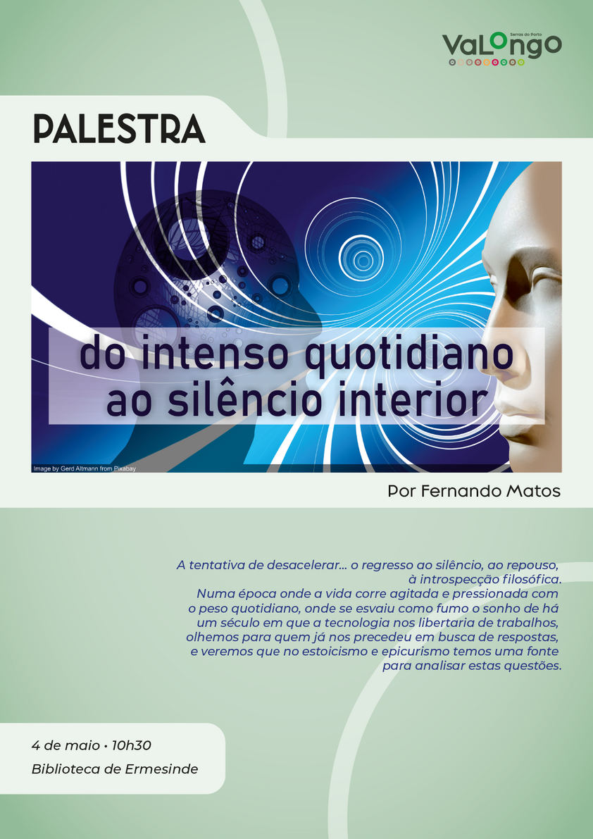 No próximo dia 04 de maio, pelas 10h30, a Biblioteca de Ermesinde, será palco da palestra "Do intenso quotidiano ao silêncio interior", a cargo de Fernando Matos.