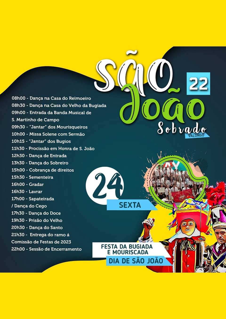 No dia 24 de junho, a vila de Sobrado acolhe uma das mais importantes manifestações culturais do País: a Bugiada e Mouriscada do São João de Sobrado. Ao longo de todo o dia, centenas de sobradenses percorrem as ruas da freguesia representando uma lenda secular que gira em torno de uma imagem milagrosa de S. João.