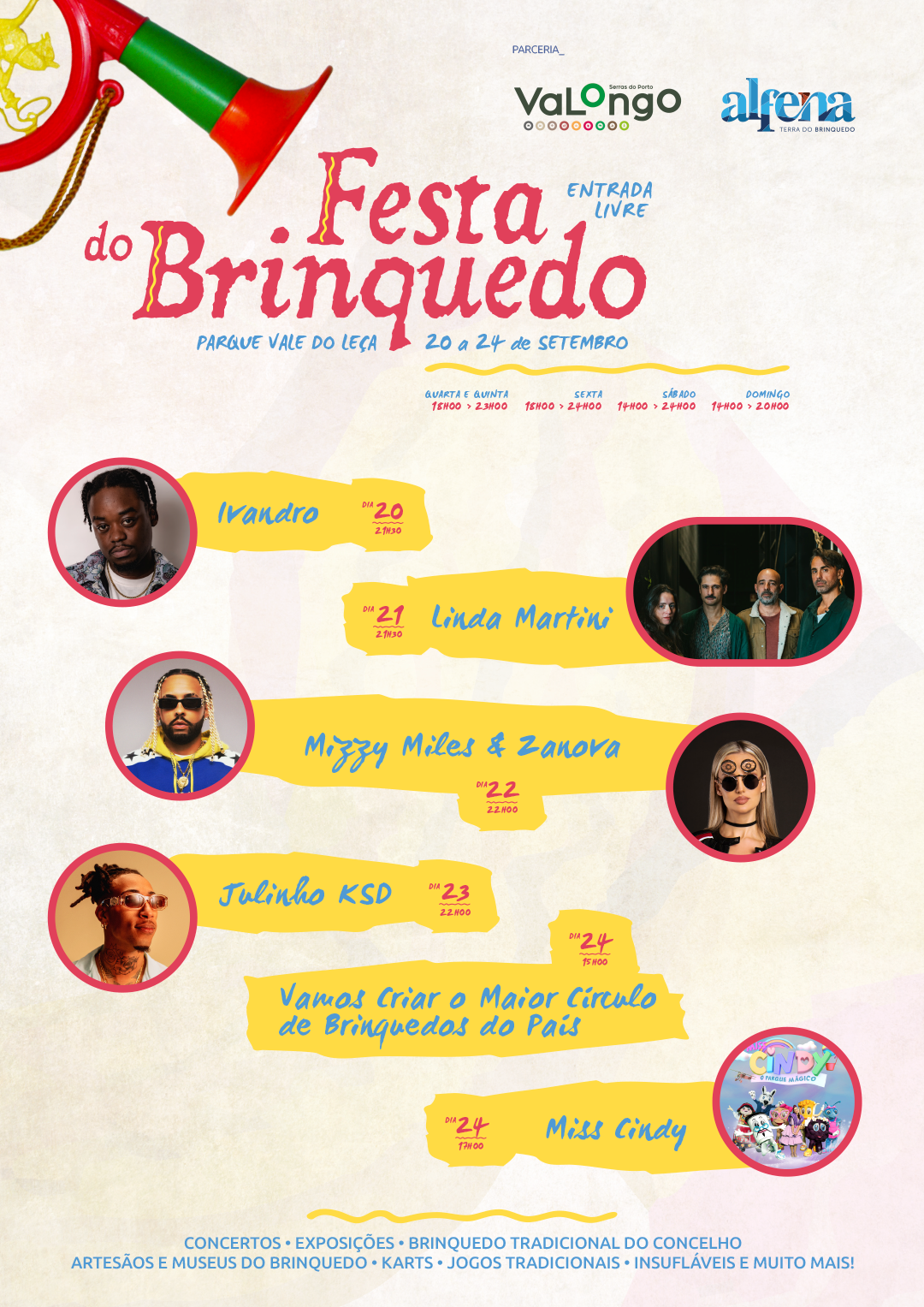 De 20 a 24 de setembro, o Parque Vale do Leça, em Alfena, volta a transformar-se no recinto predileto para as brincadeiras de jovens e menos jovens. Ao longo de cinco dias não vão faltar motivos para visitar Alfena e entrar no imaginário do Brinquedo, seja ele tradicional ou mais vanguardista.