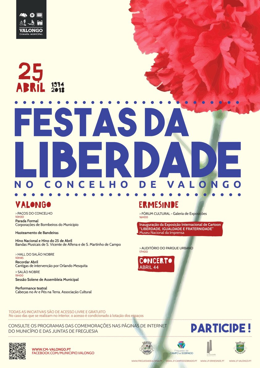 Como habitualmente, o Município de Valongo vai comemorar o 25 de Abril com um conjunto de atividades de âmbito cívico e cultural.