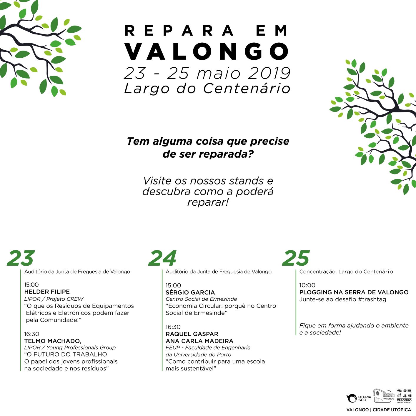 No âmbito do Projeto Valongo, Cidade Utópica, a Câmara Municipal de Valongo, o Projeto Utopia 500 (CETAPS/FLUP) e o Agrupamento de Escolas de Valongo vão promover o "Festival Repara Valongo". Este evento irá decorrer entre os dias 23 e 25 de maio no Largo do Centenário em Valongo e visa inspirar a participação cívica de jovens de cursos profissionais, pondo em prática e ao serviço da comunidade o conhecimento adquirido ao longo dos cursos, nomeadamente no que diz respeito a estratégias sustentáveis, como por exemplo a reparação de bens em vez da sua substituição por novos produtos. Ao mesmo tempo, visa ainda sensibilizar a comunidade para a importância da sustentabilidade e da potencialização de recursos locais. Por fim, visa mostrar as boas práticas empresariais que possam servir de exemplo e de inspiração a jovens.