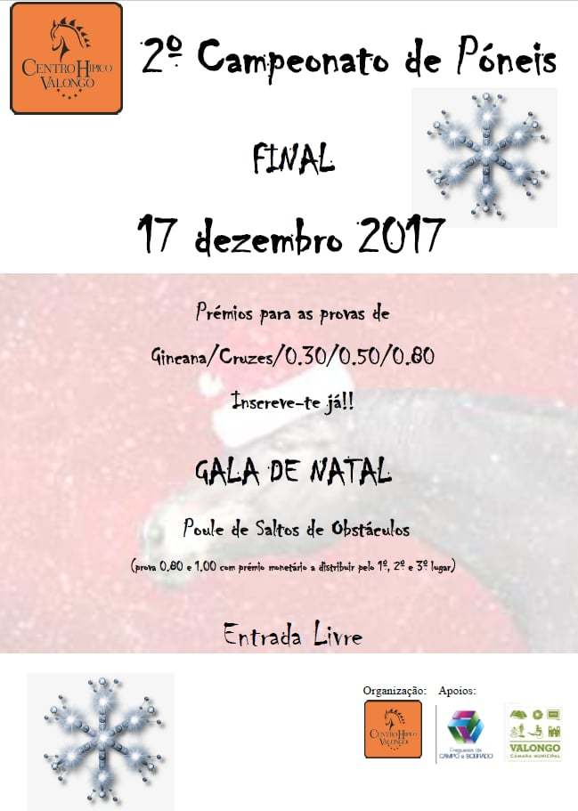 Dia 17 de dezembro, pelas 09h30, irá decorrer a final do 2º Campeonato de Póneis.