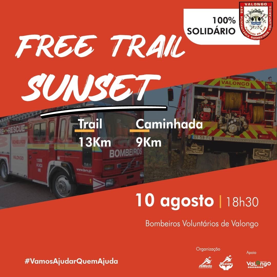 O Município de Valongo, em coorganização com a Kemedo Team Associação Desportos em Natureza, irá realizar, no dia 10 de agosto de 2024, a 8ª edição do evento “Free Trail Solidário Sunset”, com saída e chegada nos Bombeiros Voluntários de Valongo. O evento consiste numa prova de Trail-running que percorre trilhos das serras de Valongo e Sobrado, com 13 Kms de distância, assim como uma caminhada de 9kms, sendo esperados cerca de 600 participantes. Visto que este será um Free Trail Solidário, sem inscrição obrigatória e também sem vertente competitiva, o dinheiro angariado nos donativos revertem na totalidade para a Associação Humanitária dos Bombeiros Voluntários de Valongo.