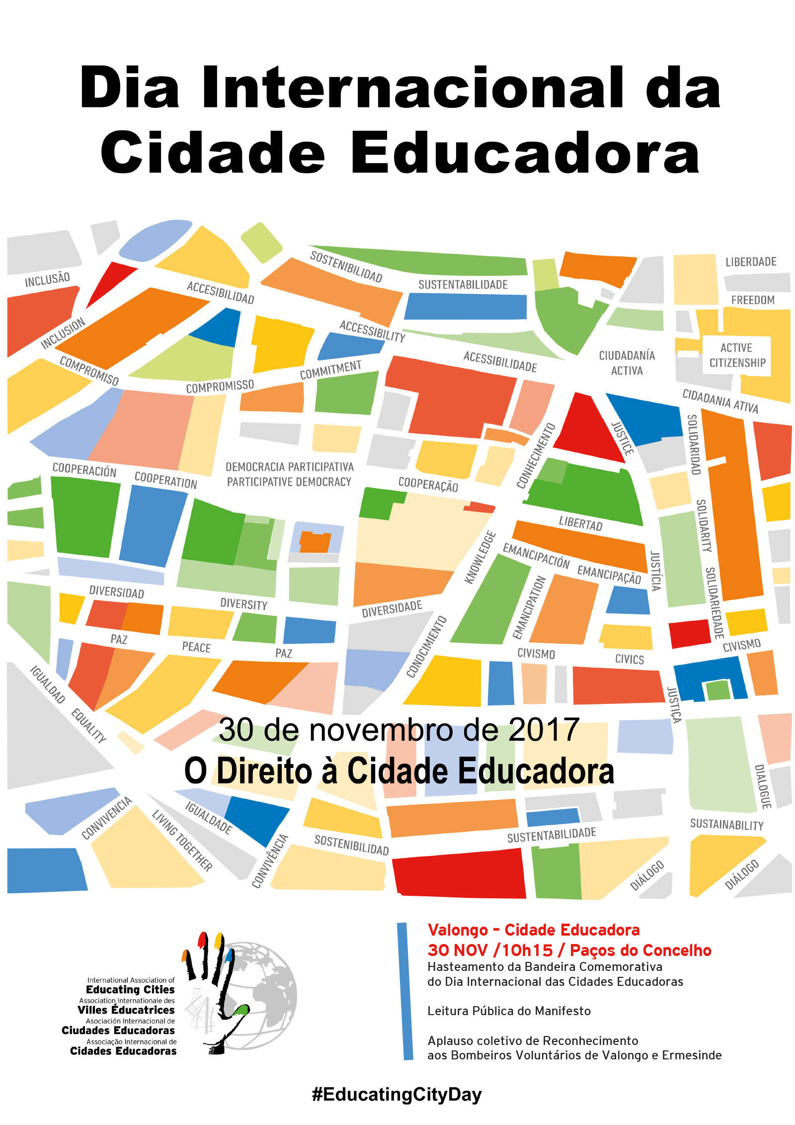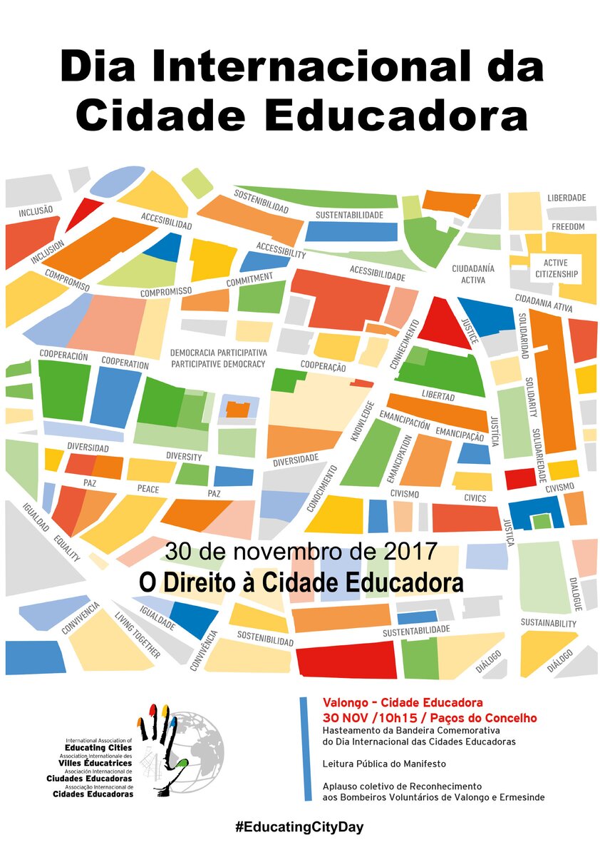 Decorridos mais de 25 anos sobre a criação da Carta das Cidades Educadoras, a Assembleia Geral da Associação Internacional das Cidades Educadoras acordou fixar o dia 30 de novembro como Dia Internacional da Cidade Educadora. Este dia visa criar consciência, à escala mundial, da importância da educação como motor de mudança e juntar novos aliados a favor deste modelo de cidade.