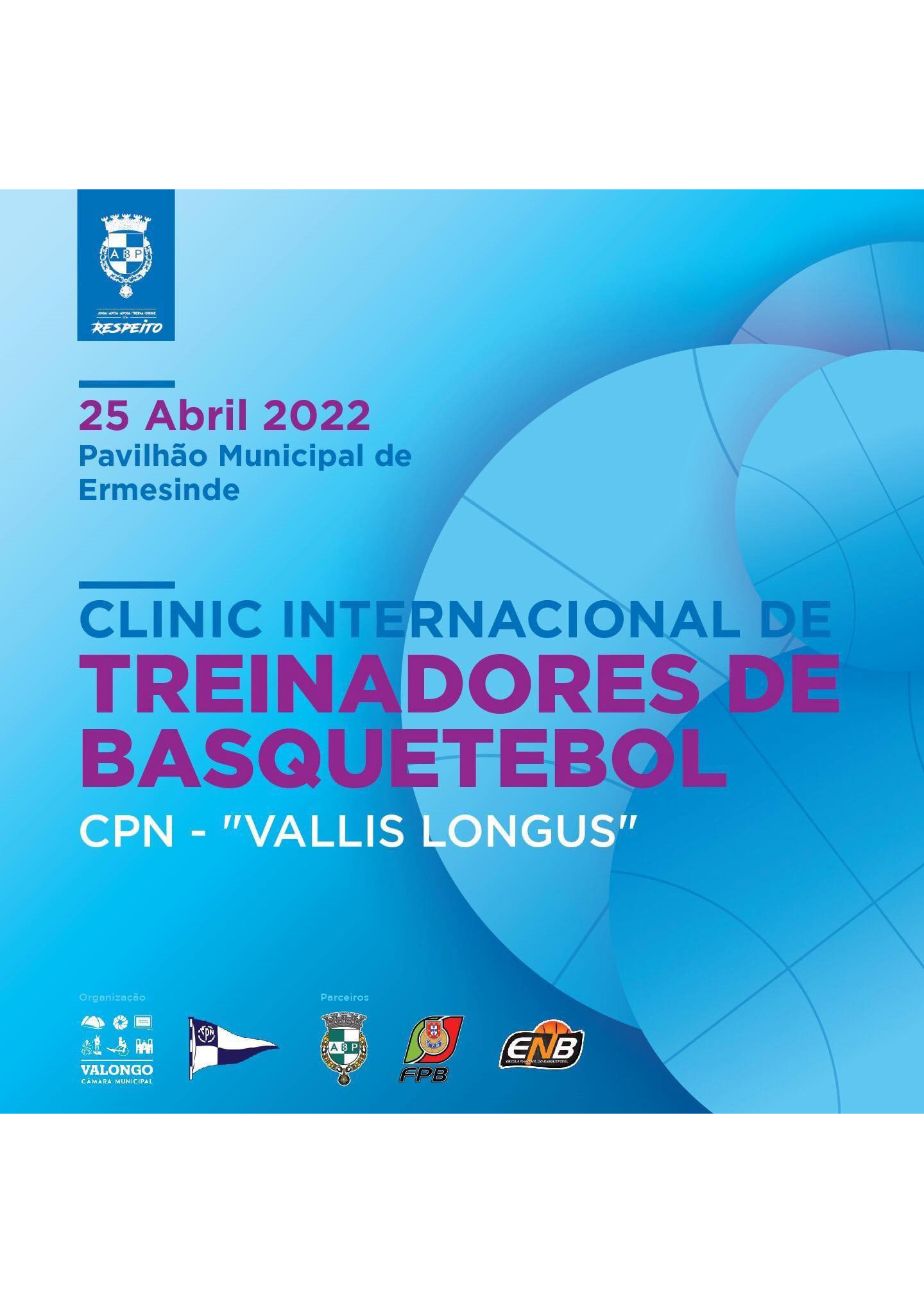 O Clube de Propaganda da Natação, com o apoio da Câmara Municipal de Valongo, vai realizar o I Clinic Internacional de Treinadores de Basquetebol, no dia 25 de abril, no Pavilhão Municipal de Ermesinde.