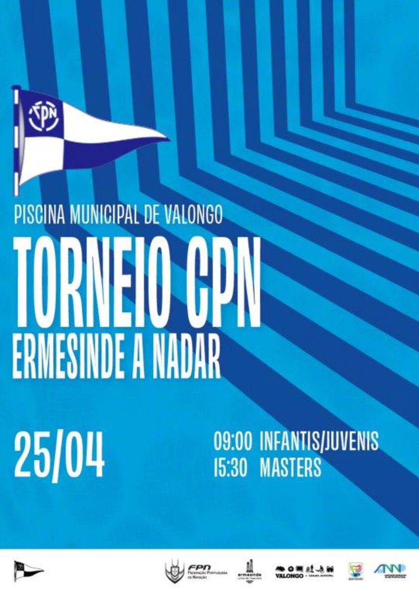 O Clube de Propaganda da Natação, com o apoio do Município de Valongo, vai realizar o "I Torneio CPN - Ermesinde a Nadar", no dia 25 de abril, na Piscina Municipal de Valongo, dirigido aos escalões de Infantis, Juvenis e Masters, masculinos e femininos, de acordo com o seguinte programa: