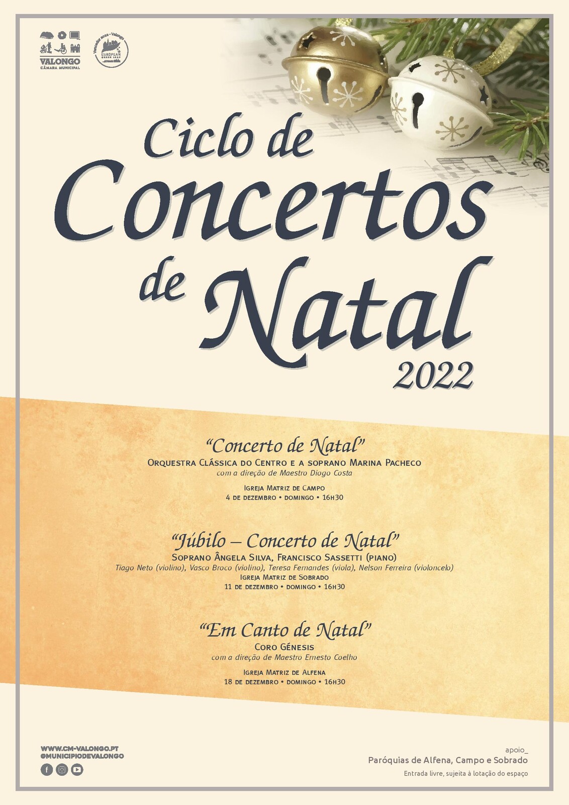 A Câmara Municipal de Valongo vai promover, um pouco por todo o concelho, um vasto conjunto de atividades para assinalar a época natalícia que se avizinha. Uma das iniciativas é um ciclo de concertos de Natal que vai percorrer as igrejas das freguesias de Alfena, Campo e Sobrado.