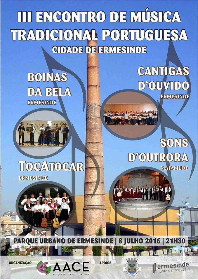 O III Encontro de Grupos de Música Tradicional Portuguesa realiza-se na próxima sexta-feira, dia 8 de Julho, pelas 21h30, no anfiteatro do Parque Urbano de Ermesinde. Esta iniciativa da Associação Académica e Cultural de Ermesinde conta com a participação de quatro grupos, que, com o seu estilo muito próprio, prometem envolver a população o concerto e dar vida ao Parque Urbano de Ermesinde.