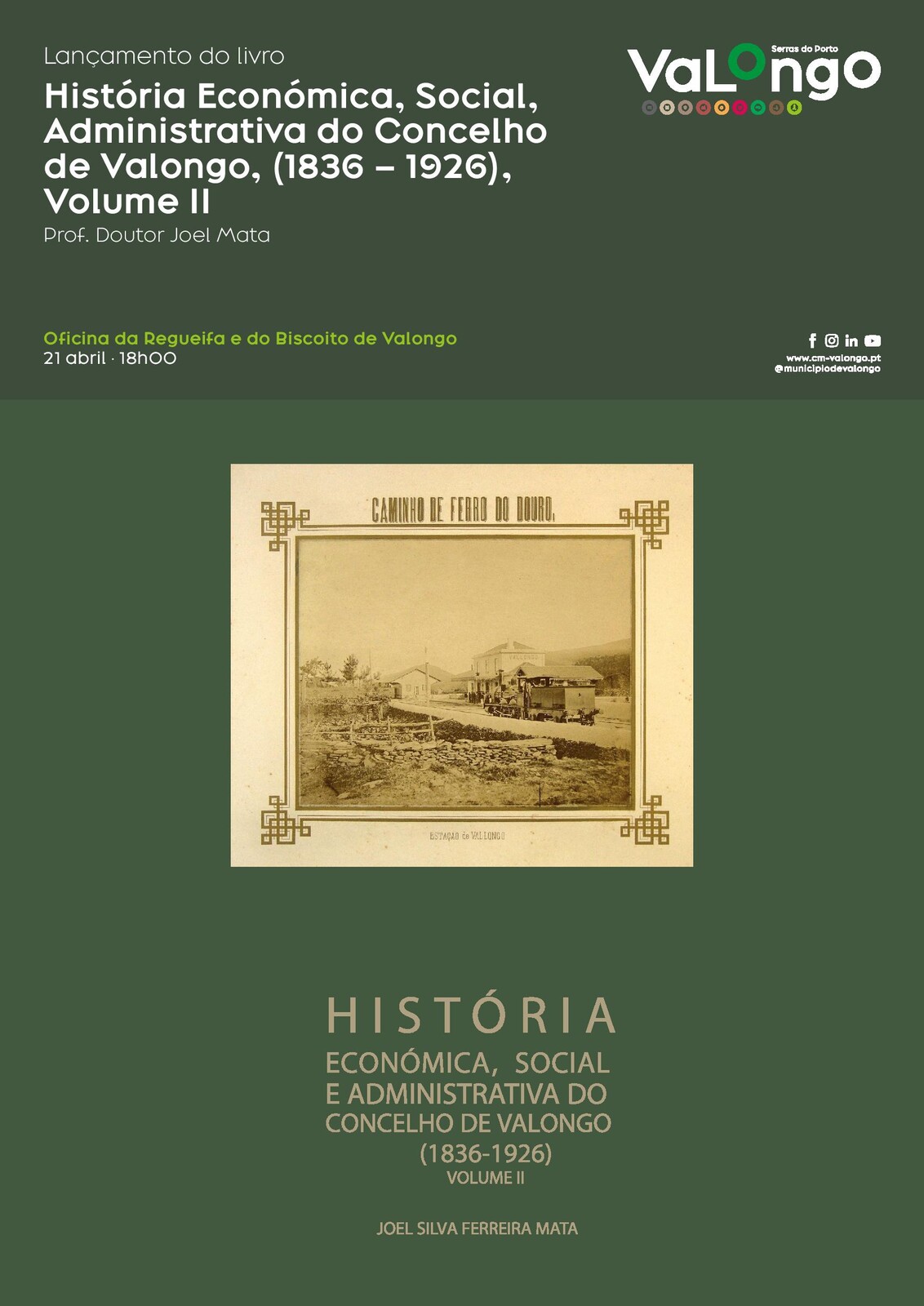 Na próxima sexta-feira, dia 21 de abril, pelas 18h00, a Oficina da Regueifa e do Biscoito de Valongo recebe o lançamento do livro "História Económica, Social, Administrativa do Concelho de Valongo, (1836 – 1926), Volume II", da autoria de Joel Mata.
